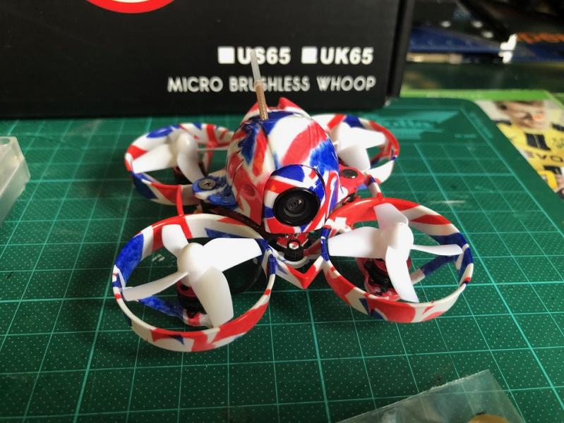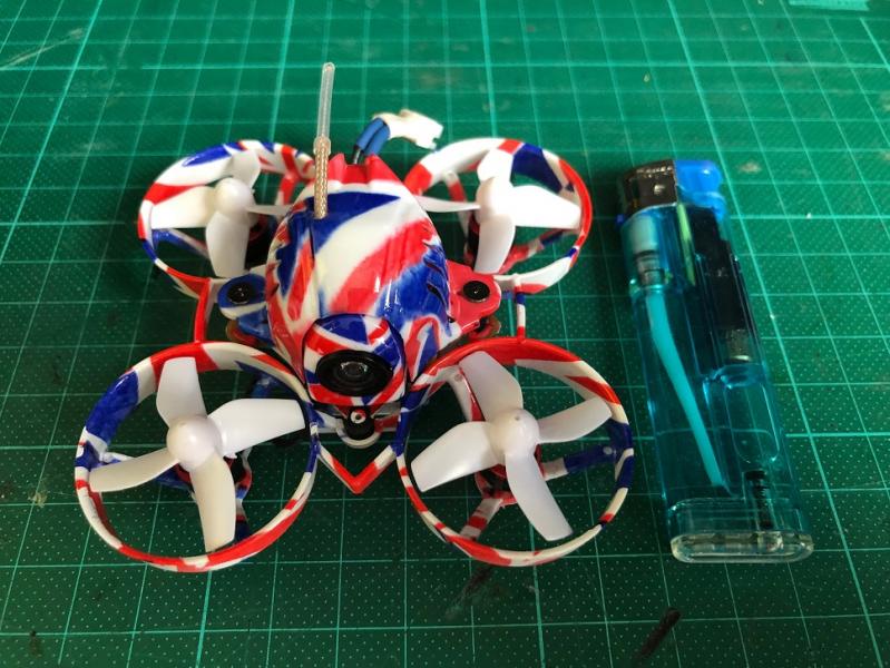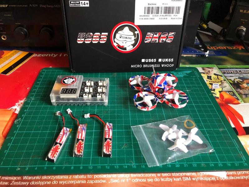 Witam Z dronami typu hubsan czy Blade nano miałem już wcześniej do czynienia ale zawsze chciałem spróbować latania FPV. Miałem kupiony odbiornik RC832, później okazyjnie dokupiłem gogle Quanum V2 z myślą o latającym skrzydle. Zima mnie zastała i nie polatałem FPV skrzydłem, w głowie zrodził się plan na mini drona typu Tiny Whoop z FPV i latanie po domu. Mając już do czynienia z dronami z silnikami szczotkowymi i ich słabą żywotnością postawiłem na dronika Eachine UK/US65 z silnikami bezszczotkowymi. Na czarnym piątku w bangood w listopadzie zamówiłem i początkiem stycznia przyszedł. W zestawie: Dron, 3 szt lipo 1S 250 mAh, 2 komplety śmigieł 4 łopatowych, ładowarka 6 kanałów, śrubokręt, gumki i zapasowe śróbki. Od silnika do silnika po przekątnej 65mm, naprawdę maleństwo dla odniesienia zapalniczka. Płyta główna CRAZYBEEF3FR zintegrowana z 6A ESC i odbiornikiem Frsky, silniki 0603 1900KV, Nadajnik FPV 25mW, kamera 700TVL. Dronika programuje się jak większych braci przez betaflight co ciekawe zainstalowany w wersji 4.0. Lata się tym pięknie, można się przeciskać pod stołem krzesłami itp, na myśl mi przychodzi samochodowa gra komputerowa z młodych lat Micro Machines tyle że w 3D. Co do gogli. Jak się okazało w goglach szybko robi się ciepło, soczewka paruje i obraz staje się rozmazany - bardzo irytujące. Jak radzą sobie z tym inni - proste - wentylacja. Zakupiłem 4 cm wentylator 12V wyciąłem na niego miejsce w konstrukcji gogli (coś ala styropian) i wkleiłem. Z patyczków do szaszłyków wkleiłem nad wentylator ramkę by zrobić przestrzeń gdzie zasysane będzie powietrze. W tych goglach piankowy rdzeń z monitorem i soczewką jest w neoprenowym ubranku. Całość działa znakomicie, wydaje się jako przeróbka nr 1 w tych goglach. Fotki przeróbki gogli: A tak wygląda obraz z drona w goglach: Pełne OSD: sztuczny horyzont, czas od uzbrojenia, stan baterii a nawet chwilowy pobór prądu i suma zużytych mAh - wszystko można dowolnie zmienić w betaflight.