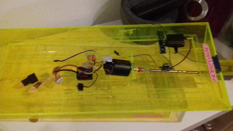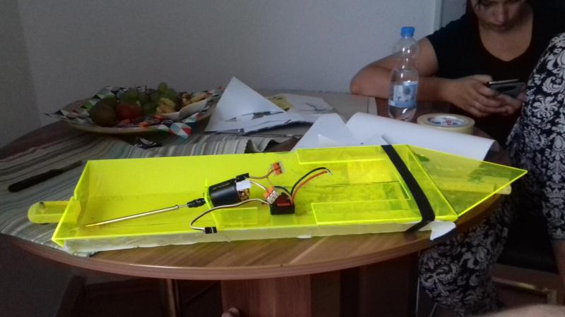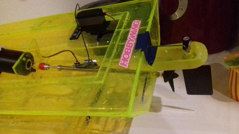 2. Witam jeszcze raz wszystkich na forum, Potrzebuje od was pomocy, jak widzicie na zalaczonych zdjeciach zrobilem swoj pierwszy model motorowki, problem polega na tym ze oprocz tego iz musze jeszcze popracowac nad szczelnoscia to ta motorowka prawie wogole nie chce plynac - 5-10km/h. Trzymajac ja w rekach i dodajac gaz naprawde czuc moc i potencjal ale puszczajac zachowuje sie jak zolw... Nie wiem czy problem lezy w budowie lodki - zostala ona wykonana na oko ale jest dobrze wywazona i ladnie trzymie sie na wodzie. Sruba napedowa jest raczej dobrej wielkosci... Nie wiem czy silnik nie jest zaslaby? ale moc czuc... Prosze pomozcie....