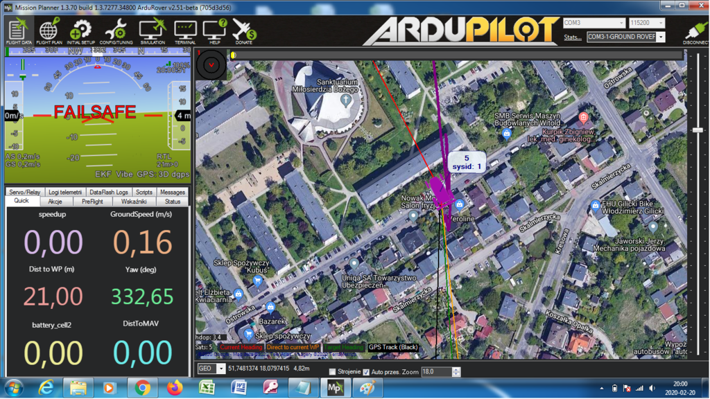 Witam wszystkich mam pewien problem z łódką która jest wyposażona w apm 2.8 z zew. gps M8N. Łódka zapisuje punkty, zmienia tryby pływania jednak nie chce w trybie auto dopłynąć do zapisanego punktu. W każdym trybie (rtl, auto, guided) zachowuje się tak samo jak na filmie . Byłem przekonany że to wina złej kalibracji kompasu ale po 10 kalibracji jest bez zmian. Spotkaliście się z czymś takim. Od czego powinienem zacząć?