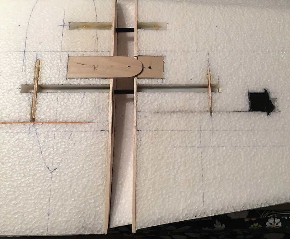 W płaszczyźnie w której dałeś dłuższe boki listewek ster jest sztywny. Proponowałbym (tylko jeśli XPS nie jest dostatecznie sztywny) płaskowniki węglowe 0,5x3mm lub 0,5x5mm ale wklejone najwęższą powierzchnią do powierzchni bocznej steru (tak jak w kombatach, tylko tu będziesz potrzebował klej cyjanoakrylowy styro.). Doskonale usztywniają i nieznacznie podnoszą masę. -