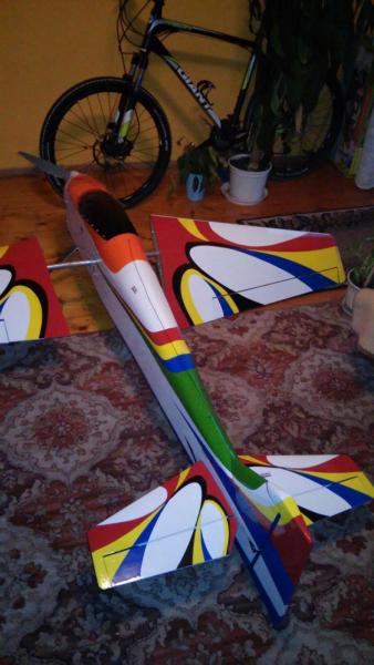 Zbudowałem do treningu F3A taki oto model. Silnik Hacker A60-7SV2, reg. Jeti Advance 90 i 10S 5000mAh. Lotki HS-5645 2szt, wysokość i kierunek po jednej sztuce HS-645MG.