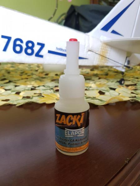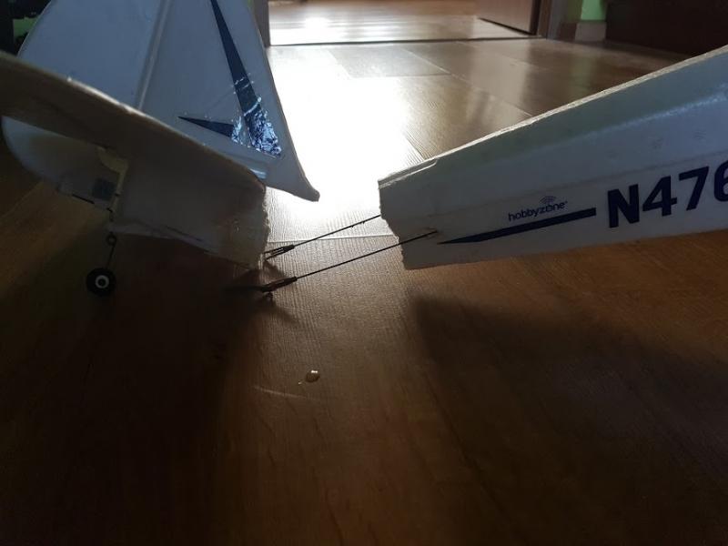 Wykorzystałem 3 pręciki 2mm i klej za zacki (zdjęcie poniżej). Płócien i laminowania nie robiłem. Ogon trzyma się bardzo dobrze. Do przywrócenia sprawności pozostało sklejenie dźwigni steru kierunku. Który klej wykorzystać? Zacki czy dragon: