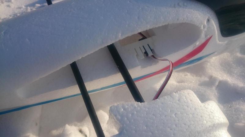Niestety model zaliczył krecika, na szczęście w metrowy śnieg, straty: serwo kierunku oraz przyczyna i strata zarazem - regulator napięcia,