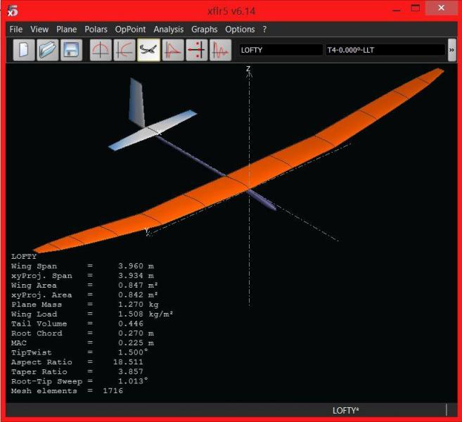 8. Witam, Po roku od ostatniego wpisu, wreszcie LOFTY doczekał się udziału w zawodach. Wstyd się przyznać, że od roku model nie latał... Wczorajsza masa modelu do lotu to 1,2kg przy 3,96m oraz napęd pozwalający na osiągnięcie wysokości max 130 w 30s były lekkim ograniczeniem przy zastanych warunkach wietrznych - dobrze by było dodać zapasu mocy nawet do wersji lekkiej (np taktycznie - 20sekund szukać komina nisko i w 10 dogonić resztę gdyby startowali jednak zdecydowanie wyżej). Wczorajsze zawody zaliczam do udanych. Lądowanie modelem do punktu przy tak niskiej masie jest bardzo łatwe, a niska masa do spokojnych warunków (kolejka poranna) była jak znalazł Korzystając z dużego zastrzyku motywacji wynikającej z rywalizacji w doborowym towarzystwie modeli z foremnika - od razu ruszam z wykonaniem wersji wzmocnionej (np. mocniejsze skrzynki bagnetowe), tak by model można było balastować do 2kg. W wersji szklanej, LOFTY jest wykonany w głównej mierze z tkanin: - szklana 50g/m2 - węglowy spread tow Samurai 70g/m2 -włókna jednokierunkowe 100g/m2 - rowing węglowy IMS Podaję dane: - rozpiętość 3,96m - masa do lotu (od) 1200g - cięciwa przy kadłubie 260mm @TommyTom - model ma podwójny wznios.