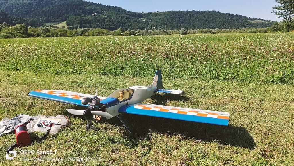 To mój pierwszy taki duży model z silnikiem benzynowym, generalnie sporo latam na szybowcach, ale w spalinach mam doświadczenie, drugi mój model motoszybowca był napędzany silnikiem metanolowym. Trenerki też "przerobiłem" a aktualnie latam też czymś takim: Ten drugi to Sereno f3a electro