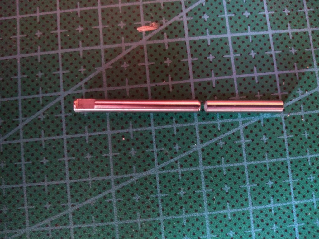2. Jak szukałem konkretnie tej samej ośki, to znalazłem gdzieś tylko jedną ofertę (z Aliexpress) i kosztowała więcej jak silnik (było można kupić chyba tylko 10 sztuk). Ośka siedziała bardzo mocno i myślę, że nawet bez tej małej śrubki nic przy normalnym lataniu by jej nie ruszyło. Myślę, że kupię sobie nowy silnik (mocowany od przodu) i poproszę kogoś, żeby wytoczył mi taki sam wałek, a już sam sobie na-frezuję miejsce na śrubkę. Załączam zdjęcie podglądowe ośki: