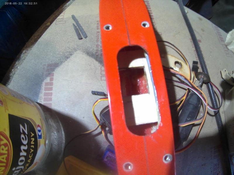 Albatros modelot 2,6 w skrzydełkach,zmierzyłem dokładniej 90cm długości popychacza. cholerka ciasno w tym kadłubie i co zastosować wręgę z otworami w połowie długości czy jakiś inny patent na który nie wpadłem. Serwa i motor już dojechały to miło by było przewietrzyć mu skrzydełka w najbliższym czasie edit jak mocne serwo do V-taila zastosować 2kg/cm cyfrowe wystarczy?