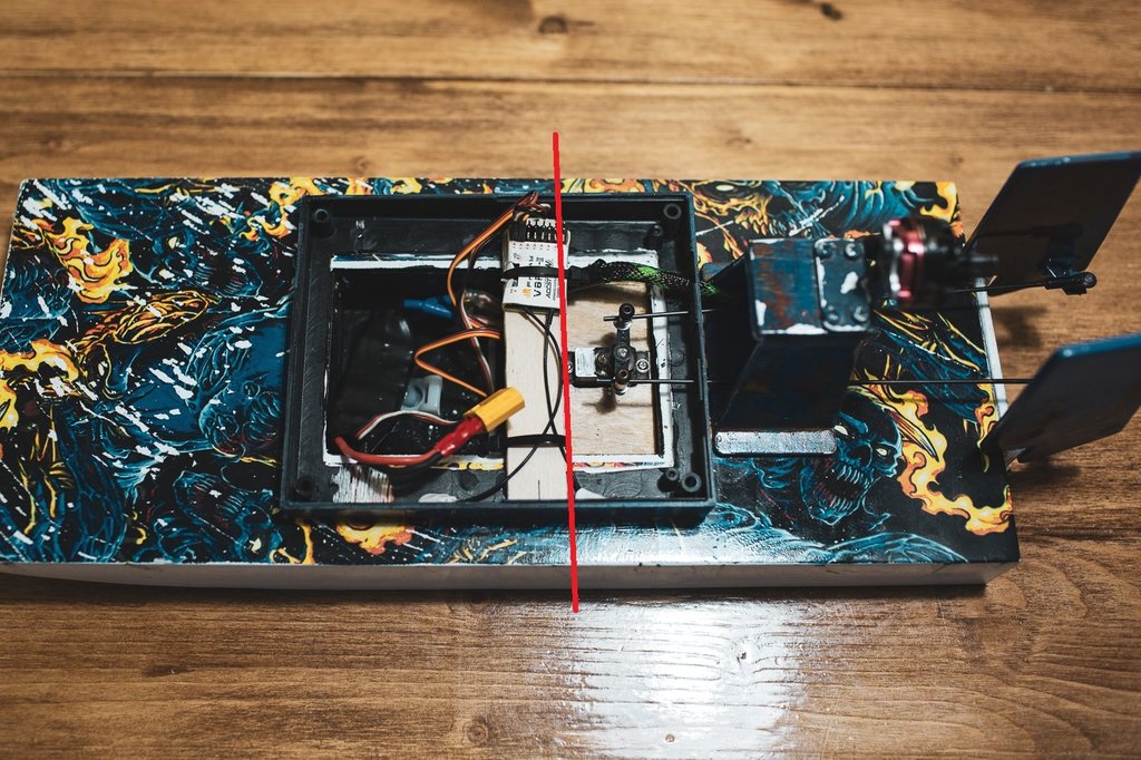 SC mam mniej więcej w miejscu półki na nadajnik Sugerujesz abym zastosował śmigło ciągnące i zmienił kierunek obrotów silnika? Myślałem o tym, jednak nie znalazłem logicznego wytłumaczenia, czemu miał bym to zrobić Nie sprawdzałem dokładnie, ile mm zanurza się łódka. Na oko to jakieś 1/4 wysokości burty. -