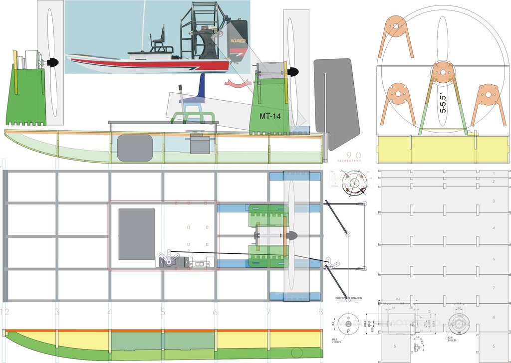 Witam, Jaki czas temu postanowiłem zbudować model airboat`a. Wybór padł na MT-14 Szuwarek http://www.rcclub.pl/opis-budowy-modelu-lodki-bagiennej-mt-14-szuwarek/ Model zbudowałem z wyciętych na laserze elementów sklejkowych, zgodnie z planami ze strony. Po zamontowaniu wyposażenia, wyruszyłem na testy. Model przy lekkim dodaniu gazu, nurkuje dziobem pod wodę. Wyposażenie umieszczone jest wg. zaleceń. Silnik jaki użyłem w łodzi to Emax RS2205 (śmigło pchające). Co może być przyczyną nurkowania? 1. Złe wyważenie? 2. zły kąt montażu silnika? Kąt silnika wymusza jego mocowanie. Wg. planów, montaż jest lekko pochylony w górę. 3. śmigło pchające ? ma to jakiekolwiek znaczenie? Z góry dzięki za pomoc. Jestem świeżynką w kwestii modeli pływających.