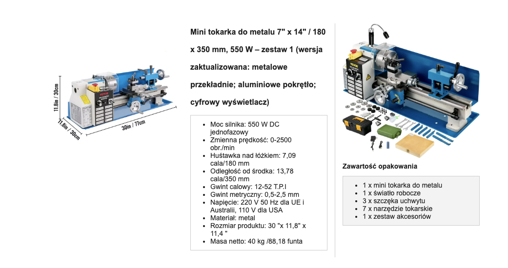 Zastanawiam się nad zakupem, tokarki do mojej modelarni. (jest w mieszkaniu). Nie będę raczej toczył gwintów i innych mega super wymagających rzeczy. Pewnie nie będę w ogóle używał posuwu automatycznego. Potrzebna mi głównie do drobnych prac w aluminium. Wiem to chińczyk, wiem wymaga rozebrania oczyszczenia i przesmarowania. Ale czy ma to jakiś sens, czy w cenie ok 2kzł można kupić cos lepszego? PS. Proxxon mnie nie interesuje.