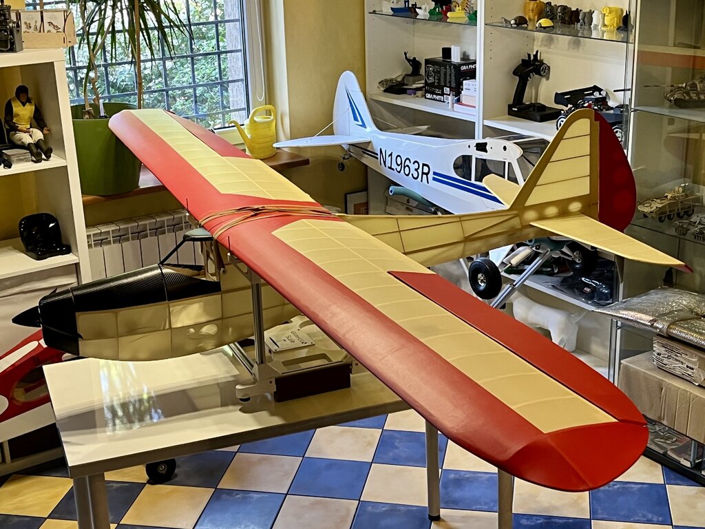 Ta sama co była w AS-25, zakochałem się w niej - to ORACOVER ORATEX ANTIQUE, czerwona to jej odmiana w innym kolorze. Obie mają strukturę płótna, dlatego idealnie pasują do takich staroci Licze na to, że będzie dobrze widoczny, o ile oczywiście będzie latać