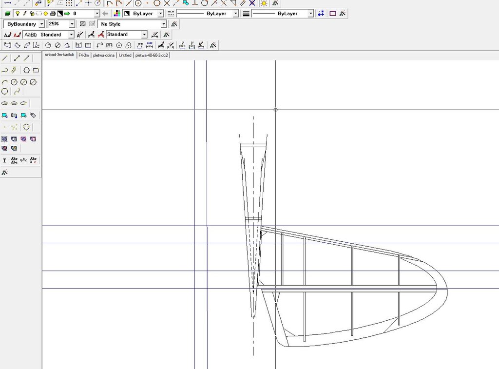 19. Jak narysuję wszystko, wytnę zmontuję i oblatam, to mam w planie zrobić short kit w różnych wersjach. Na początek wersję z lotkami i silnikiem, oraz płaskim sterem wysokości... Ale to chwilę jeszcze musi potrwać, na razie kończę kadłub i usterzenie. A jeszcze są skrzydła a tu będzie trochę modyfikacji i innych rozwiązań jak w oryginale. No masz jak zawsze