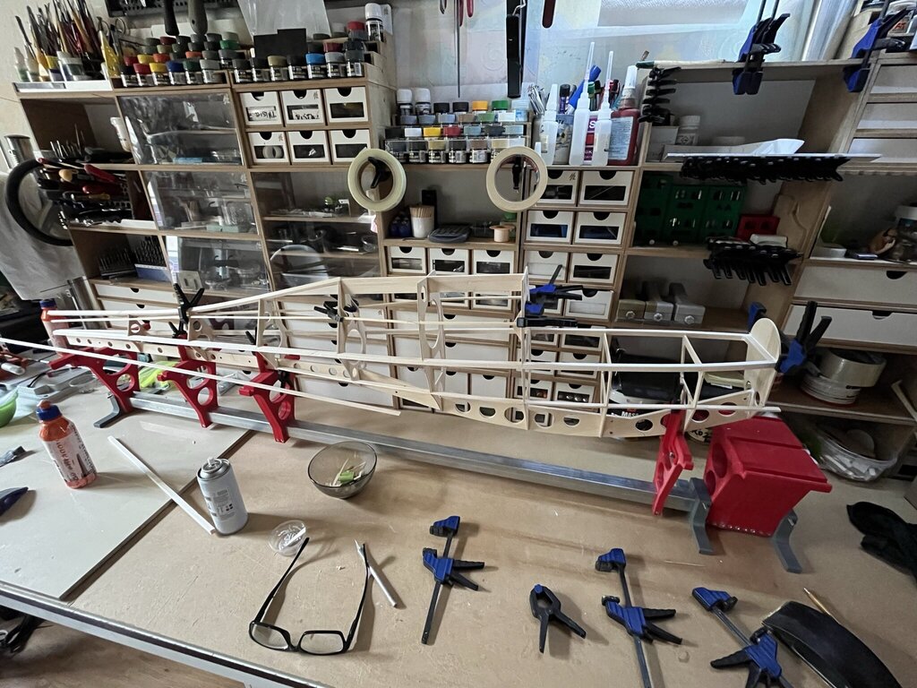 1. Trochę drgnęło, zaczyna się kształt kadłuba wyłaniać Za chwilę dojdzie maszt pionowego