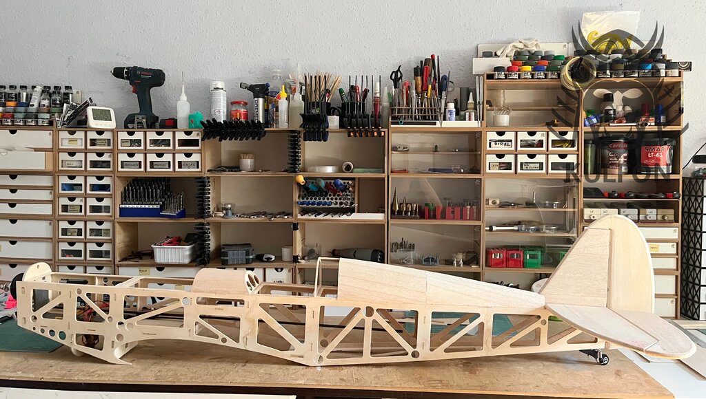 To jest pierwsza wersja kadłuba, celowo budowana jako klatka. Bo łatwiej i szybciej. Popatrz jak wygląda nowa wersja kadłuba (też klatka) , który właśnie się buduje. Tu jest opis, budowy https://maciej.waw.pl/?p=1630 Na kadłubie zmieniając jego budowę (więcej wycięć i brak drugiej warstwy sklejki z przodu) a także zmieniając na lżejsze stery kierunku i wysokości urwałem kilogram masy gotowego modelu. 500 gram wywalonego ołowiu z przodu + 500 gram urwane z wagi kadłuba