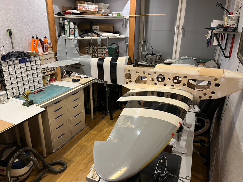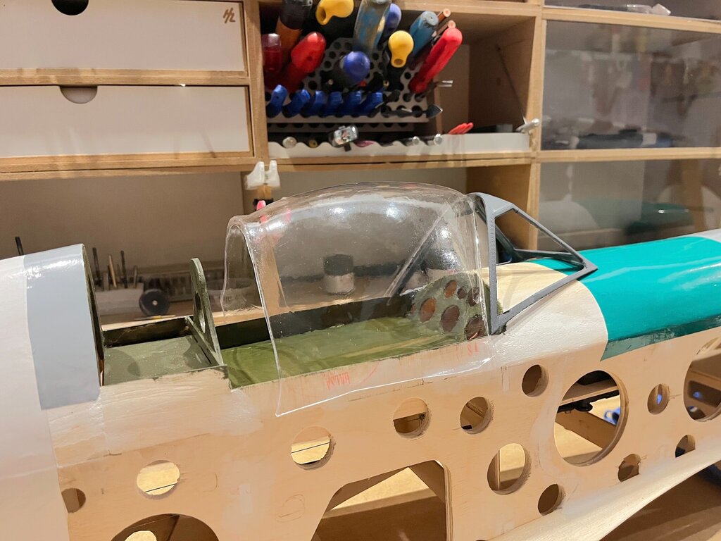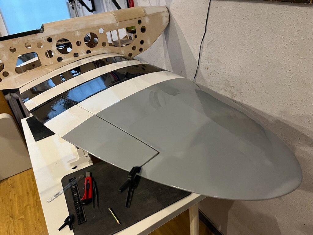 Mogłobyć miesiąc wcześniej, ale jest jak jest Kabinka wytłoczona to i kadłub oklejony. Teraz tylko wygięcie i wklejenie kawałka VACU, na tył kabiny, przyklejenie owiewki centralnej i części przedniej do której zostaną wklejone szybki. A jak to zrobię to już z górki tylko elektryka silnika i mocowanie elektryki i elektroniki Uff I kolejny model zacznie się budować Jeszcze jedna przymiarka -
