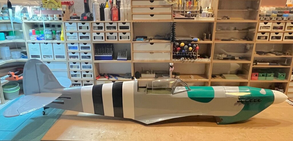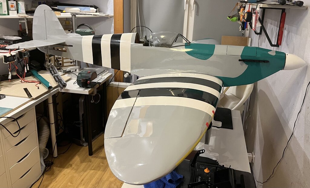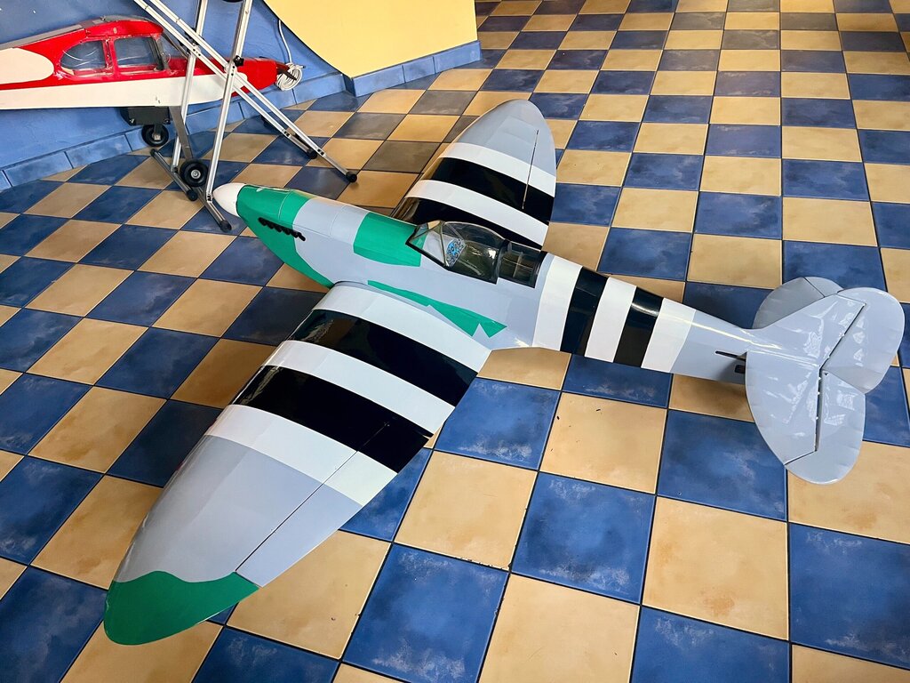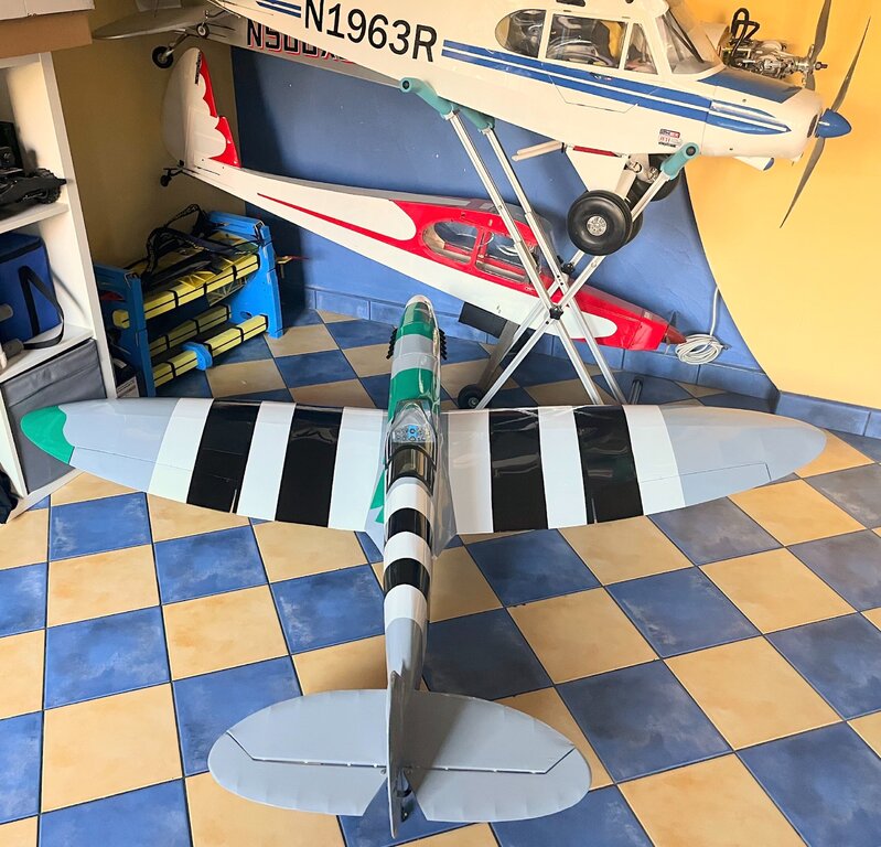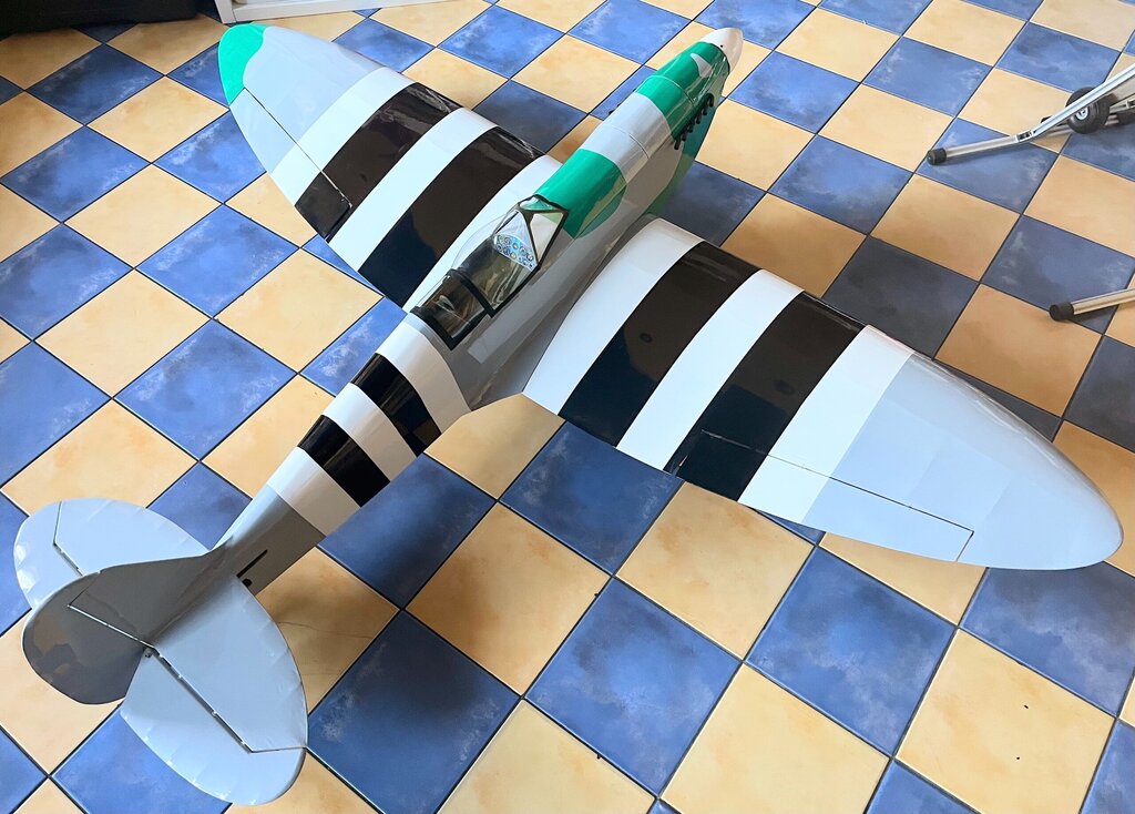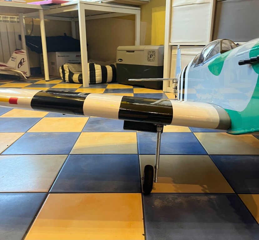 Pierwszy raz oklejony, na ziemi na własnych nogach. Teraz już tylko niewidoczne robótki z elektryką No i wycięcie kołpaka pod śmigło. Ponieważ to nie makieta to będzie zwykłe modelarskie dwułopatowe -