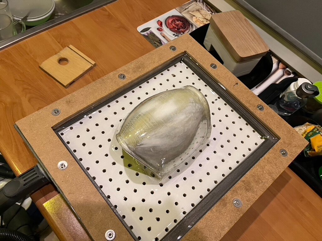 Była chwila ciszy w oczekiwaniu na kabinkę, która nigdy nie została zrobiona. Dlatego zrobiłem swoja maszynkę i nowe kopyto. Kopyto druk 3D, szpachla lekka do balsy, lakier Eze-Kote. Na dole płytka na cjak, z jednej strony karton na cjak, do środka ok 30-40 dkg gipsu. Szlifowane papierem 80, 120 i 230. Kopyto na razie bez problemu wytrzymało 3 tłoczenia. Efekt na fotkach poniżej. Koszty: - Maszynka z odpadów także zero. - 10 srubek M4 i nakrętek kłowych (miałem) - PET G 0,75 mm 2,05x1,25 m - płyta bezbarwna VIVAK - 119 zł - gaz nie wiem Zrobiłem trzy podejścia bo musiałem poprawić błędy w maszynce i w stojaku do piekarnika, oraz w poziomie grzania. Prace wstrzymane, przez pewną firmę ruszają od nowa Kabinka wygląda tak -