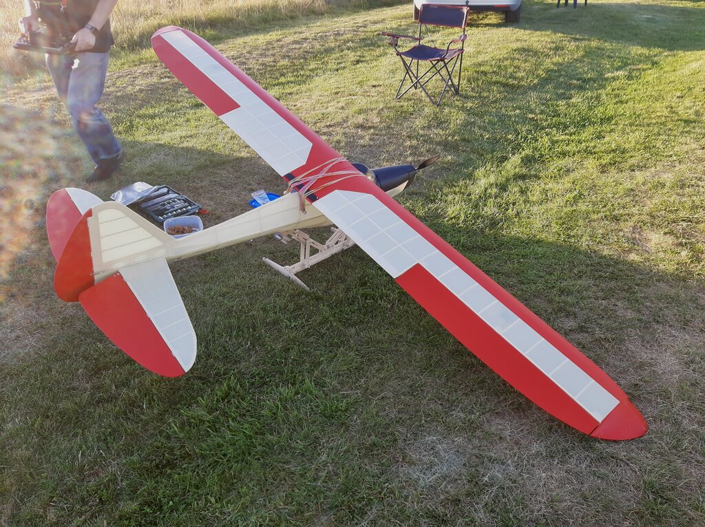 No i poleciał, taki niedokończony Obiecałem mu kabinkę , jak będzie latał. Model lata bardzo poprawnie, dobrze reaguje na stery, do tego stopnia, że muszę mu zmniejszyć wychylenia początkowe sterów. Na razie zrobiłem 5 krótkich 2-3 minutowych lotów, bo powoli dogaduje się ze środkiem ciężkości. Latam z baterią 3S/1300. Jako, że jest mały lubi raczej prawie bezwietrzną pogodę, lub słaby wiaterek. Dołączam go do stałej lotniskowej floty, bo naprawdę daje sporo radochy -