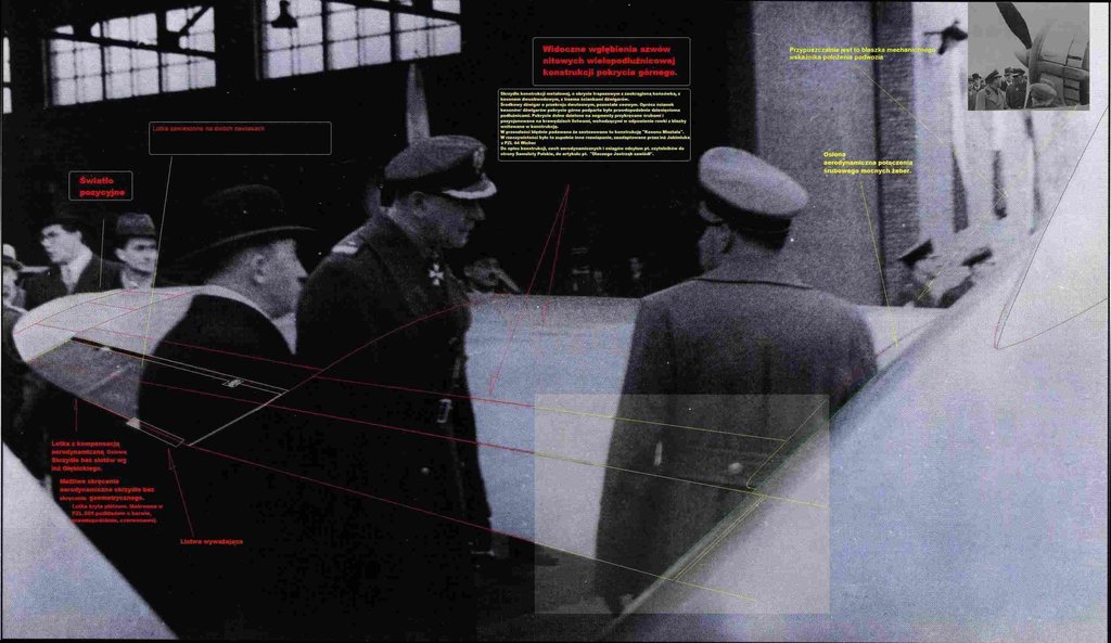 Z całym szacunkiem dla utytułowanych badaczy historii i inżynierów których i ja cytuję ale bez ,,pewnej takiej nieśmiałości" mogę was zapewnić że na pewno nie był to ,,keson Misztala"!. Trudno wam to zaakceptować?. Też kiedyś trzymałem się wersji o tym kesonie ale ona jest błędna i nielogiczna. Brak szczegółowej wiedzy na przestrzeni lat spowodował obrośnięcie tego tematu wieloma mitami i przeinaczeniami, na podobieństwo obrastania kadłuba okrętu glonami i pąklami. Osobiście nawet słyszałem (w 1990 roku, były to chyba mistrzostwa świata makiet F4C/ F4B na lotnisku Bemowo, w Warszawie) jak jeden z widzów z przekonaniem w głosie oznajmił podczas lotu makiety ,,foki" zawodnika z Finlandii że ,,FW 190 jest identyczny jak nasz Jastrząb. Niemcy skradli nasz projekt". ,,Gdzie Rzym, gdzie Krym?". Do dziś powtarzany jest też mit o tym jakoby inż. Jakimiuk konstruując ,,Jastrzębia" wzorował się na myśliwcu Seversky P-35. A wynika to tylko z tego, że oba samoloty spotkały się w 1939 roku na Okęciu, z racji promocyjnego tournee myśliwca P-35 i nawet wcale nie są do siebie podobne. Jeśli już doszukiwać się jakiegoś podobieństwa to możne je ew. bardziej znaleźć w myśliwcu Curtis P-36 Zamieściłem powyżej reprodukcję schematycznego rysunku kesonu jaki zastosował inż. Jakimiuk w ,,Wichrze". TAK PODAJE prof. Tadeusz Sołtyk w książce której tytuł wymieniłem w pierwszym poście i z której wziąłem ten szkic!. Proporcje kratownicy na moim rysunku są oparte na tym co widać na zdjęciach wykonanych przez pana Romana Mazika, na Czerniakowie, na terenie warsztatów Citroena, w 1939 roku (1939: Warszawa w oczach maturzysty - Roman Mazik) i na pewno są bliższe prawdy niż szkic z pamięci pana profesora Sołtyka. Natomiast na pewno pan profesor miał rację co do zasady konstrukcyjnej i niepotrzebnego zwiększenia ciężaru kratownicy!. Świadkowie epoki zawsze podkreślali że inż. Jakimiuk korzystał z doświadczeń innych konstruktorów, tak francuskich jak i brytyjskich co min. widać po zastosowaniu jednostronnego wylotu spalin w pierwszej wersji pierwszego prototypu ,,Jastrzębia". Korzystał też ze swoich doświadczeń jakie wyniósł z pracy przy myśliwcach Puławskiego i ,,Wichrze". Ciekawostka: był on wpisany na czarną listę służb imigracyjnych W. Brytanii bo ,,przyłapano" go podczas któregoś Salonu Lotniczego w Paryżu na odrysowywaniu jakichś szczegółów konstrukcyjnych brytyjskiego silnika czy samolotu, co uznano za szpiegostwo przemysłowe - wyczytałem to w ww pamiętniku inż. Praussa. Miał przez to pewne problemy, w końcu rozwiązane, z wjazdem na teren Korony po ucieczce z Polski, w 1939 roku. Możliwe że blachę falistą wykorzystano w centropłacie, pod górnym poszyciem z gładkiej blachy ale to i tak nie czyni z tego fragmentu konstrukcji ,,Jastrzębia" ,,kesonu Misztala" a nadal pozostaje ona konstrukcją trójdźwigarową. I do tego, podobnie jak w PZL P11, z możliwością zrzutu zbiorników paliwa. Narysowałem to zaznaczając po trzy taśmy nośne na zbiornik. Widać je na zdjęciu ,,Jastrzębia" którego obleźli niemieccy żołnierze w 1939 roku. Ideowo te taśmy mocujące były tożsame z tym co można zobaczyć w P.11c w Krakowie (załączam zdjęcia mojego autorstwa również te na których widać gęstość nitowania podłużnic i wręg kadłuba). Skoro już tkwimy w szczegółach... kto jeszcze nie widział?: ,,Werchrata niedaleko Rawy Ruskiej - miejsce lądowania PZL.50 Jastrząb" czyli program autorstwa pana Adama Sikorskiego z udziałem znanego badacza polskiej historii lotniczej, p. Marka Rogusza pt. ,,Było... nie minęło PZL-50 Jastrząb zaginął" https://vod.tvp.pl/video/bylo-nie-minelo,pzl50-jastrzab-zaginal,41080594 Cytat z tego filmu: ,,Treść meldunku: 7 września 1939, godz. 9.15. Meldunek sytuacyjny Dowództwa Okręgu Korpusu Vl (Lwow) podpisany przez szefa sztabu OK płk. dypl. Ludwika Rudkę - stan na godz. 6.00, L 7126 tj.bezp. (...) Dnia 6 bm. o godz. 6 w lesie obok Werechola koło Rawy Ruskiej spadł samolot własny ,,Jastrząb", pil. Jerzy Libacki z Warszawy. Odniósł lekkie rany w głowę i nogi. W m. Chlebowice pow. Bobrka schwytano 3 dywersantów w nocy z 5/6 bm. Eskortowani przez policję usiłowali zbiec. W czasie pościgu zastrzeleni." -