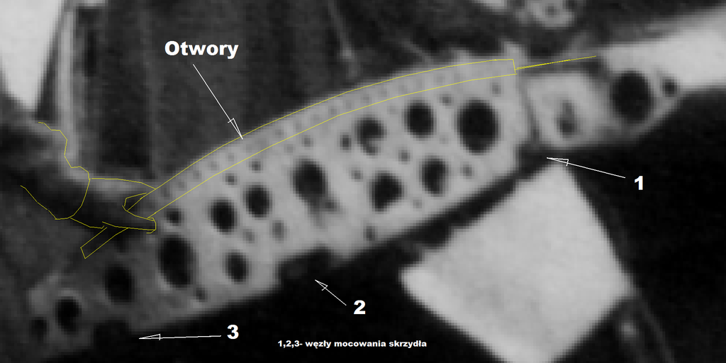 Możliwe. Pracuję nad tym tematem już prawie piętnaście lat i pewne kwestie dla mnie są oczywiste co dla innych takim nie jest. Po za tym to nie instrukcja obsługi. Staram się by posty były ciekawe i zawierały ,,smaczki". Do wcześniejszego postu dołączam obrazy które wyjaśniają to co opisałem. Widać na nich tzw. ,,mocne żebro" z kołnierzem i otworami na górze oraz z trzema węzłami mocowania skrzydła na dolnej krawędzi w centropłacie ,,Jastrzębia". Rysunki Łosia ukazują jego strukturę wytrzymałościową, w tym ,,mocne żebro" z otworami do śrub w kołnierzu górnym i dwa węzły mocowania na jego dole. To najlepsze dowody jakimi na tą chwilę dysponuję. Wojtek, dzięki za uznanie ale bez Twojej pracy moja nie miała by wielkiego sensu i znaczenia. -