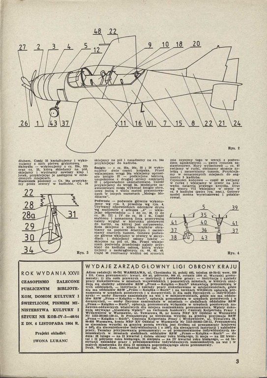 Witam wszystkich po kilku latach przerwy w temacie Jastrzębia który jest ,,wiecznie żywy'' i co jakiś czas bywa o nim co nieco słychać. Ciekawostką ostatnich dni w tym temacie, oprócz prezentacji ,,pół-makiety'' Wilka i lotów Wojtka modelem Jastrzębia w Dęblinie (mam nadzieję że wkrótce doczekamy się relacji i zdjęć/ filmów z tego wydarzenia) z okazji stulecia Szkoły Orląt, jest wydanie kolejnego zeszytu Wielkiego Leksykonu Uzbrojenia nr 324 dotyczącego właśnie PZL.50. Obok znanych zdjęć są w nim doskonałe rysunki Wojtka Niewęgłowskiego w których powstaniu, nie chwaląc się, miałem pewien merytoryczny udział którym wsparłem profesjonalne umiejętności Wojtka doskonale operującego programem graficznym 3D oraz jest tam mój skromny rysunek 2D wykonany tylko w systemowym ,,Paint'cie'' na którym starałem się pokazać potencjalny wygląd PZL.50 ll/ PZL.50a z nowym, większym skrzydłem znany z dwóch zdjęć z niemieckimi żołnierzami. Przy pomierzonych ze zdjęć proporcjach samolotu i znanej średnicy silnika (1307 mm wg Wikipedii i 1308,1 mm z przelicznika cali na mm - 51,5 cala X 25,4 mm przy czym różnice wymiarów i powierzchni po porównaniu obu skal przeliczenia były marginalne i dlatego pozostałem przy średnicy ,,oficjalnej'' tj. 1307 mm) oraz przy założeniu ,,pewnej'' rozpiętości 9,7 m wyszło mi że powierzchnia nowego, większego skrzydła zamontowanego w drugim prototypie ze zdjęcia z Niemcami (a który to pierwowzór odwzorowuje w dużym stopniu model Wojtka) mogła wynosić około 19,14 m2. Gdyby jednak prawdą było, że nowe skrzydło miało mieć około 10 metrów rozpiętości, to po jego powiększeniu do tej wartości powierzchnia wychodziła nieco ponad 19,5 m2 co jest bliskie przekazom że miała ona wynosić 19,4 m2. Przy nieuniknionych niedokładnościach podczas odczytywania (suwmiarką, kątomierzem i robieniem ,,kładów'' wg starych metod znanych z rysunku technicznego!) szczegółów ze zdjęć robionych pod kątem i po uwzględnieniu oczywistych zniekształceń powodowanych przez obiektyw aparatu fotograficznego to chyba niezłe przybliżenie i czynnik uwiarygadniający w dużym stopniu moją interpretację wyglądu Jastrzębia... co nie znaczy że jest ona ,,ostateczna''. Zapewne ktoś, kiedyś opracuje jeszcze lepsze odwzorowanie. Ciekawostką jest jak wyrysowałem skrzydło pierwszego prototypu którego rysunku w tym wydaniu leksykonu niestety niema bo informację o jego powstawaniu otrzymałem za późno przez co nie dysponowałem wiarygodnymi rysunkami, które wreszcie, jak się wydaje, prawidłowo narysowałem . Gdy autor monografii Jastrzębia, Pan dr Jędrzej Korbal zadał mi pytanie czy kolejne egzemplarze prototypowe i serii wstępnej mogły już mieć montowane nowe skrzydła stwierdziłem, kierując się logiką i przekazem historycznym, że nowe skrzydło, dla wersji ,,myśliwskiej", czyli zwrotniejszej w poziomie, nie było jeszcze oblatane/ znane a pierwotne było już znane (w tym kratownica kadłuba była policzona wytrzymałościowo ,,na zapas'' dla większych, cięższych i mocniejszych silników) sprawdzone i choć nie dało zadowalających wyników z silnikiem Merkury Vlll to mogło ,,wypalić'' po zamontowaniu Taurusa ll lub ll czyli że prawdopodobnie planowano montaż mniejszych płatów. Tego jednak nie zdają się potwierdzać znane zdjęcia z Niemcami i autorstwa Pana Mazika z Czerniakowa. Ostatecznie więc zwątpiłem w tą wersję wydarzeń. Problemem było jednak to że gdy rysując i licząc w oparciu o znane zdjęcia pierwsze skrzydło, gdy nawet zmniejszyłem cięciwy tego skrzydła o kilkanaście procent i pozostawiłem ,,pewną''/,,znaną'' rozpiętość 9,7 m, nijak nie wychodziła mi podawana wartość powierzchni płata PZL.50 I określana na 15,8 m2. Wtedy przypomniałem sobie że Pan Andrzej Morgała podawał rozpiętość płata Jastrzębia jako 9,0 m. Zrobiłem taki rysunek i to było to!. Po policzeniu powierzchni wyszło mi niemal dokładnie owe 15,8 m2. Przy okazji odległość krawędzi osłony silnika liczona od końca klapek systemu chłodzenia do krawędzi natarcia przykadłubowej cięciwy skrzydła zgodziła się wreszcie, w dużym stopniu, z pomiarami ze zdjęcia na którym widać hrabiego Ciano, generała Rayskiego i, od tyłu, inżyniera Jakimiuka. To są bardzo subtelne niuanse ale bardzo poważnie wpływają na możliwość odwzorowania sylwetki samolotu ( i zmniejszają wielkość ew. balastu ołowianego gdyby ktoś był tak odważny i chciał odwzorować pierwszy prototyp Jastrzębia w wersji ,,pościgowca'' czyli samolotu o minimalnej powierzchni nośnej niezbędnej do tego by samolot mógł latać i był on możliwie szybki ale niekoniecznie zdolny do walki w stylu jaki dziś znamy pod nazwą ,,dogfight'' w czym min. dobre były PZL P.11 . Rysunek PZL.50 I z mniejszym skrzydłem zamieszczę tu po jego ostatecznym dopracowaniu. Gdyby ew. jeszcze Ktoś nie widział filmu o tym jak powstał model Jastrzębia w wykonaniu Wojtka, Pilota Prawdziwych Małych Samolotów, to zamieszczam do niego link: Historia pewnego Jastrzębia https://youtu.be/U_EPhVDBD1g?si=jqZFulhZjQq_h-qP -