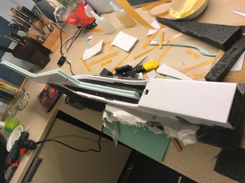 Po opanowaniu metody klejenie uważam, że jest to bardzo rokujący materiał! Nie nadaje się aż tak bardzo jeśli chcemy wykonać model typowo redukcyjny za to do pozostałych zastosowań jest genialny. Dla przykładu przez 3 godziny stałem i chodziłem po arkuszu tej pianki położonym na podłogę w kuchni pracując nad modelem i arkusz nie ma nawet najmniejszych wgnieceń etc mimo, że ważę 84kg. Spróbujcie zrobić to samo z inną pianką. Przeprowadziłem test rzucając z całej siły to co na zdjęciach o podłogę 5 razy pod rząd zero uszkodzeń wewnętrznego rdzenia. Pianka Bardzo ładnie się kroi, a wygładzić ją można podobnie jak EPP żelazkiem co daje dość równą powierzchnię. Myślę, że spróbuje zrobić z tego skrzydła jeśli uda się to ciąć gorącym drutem. -