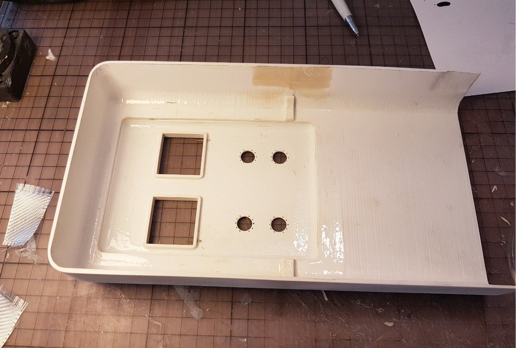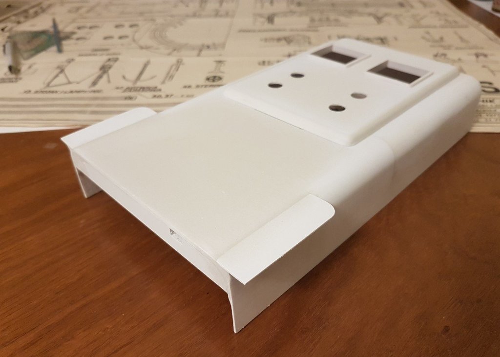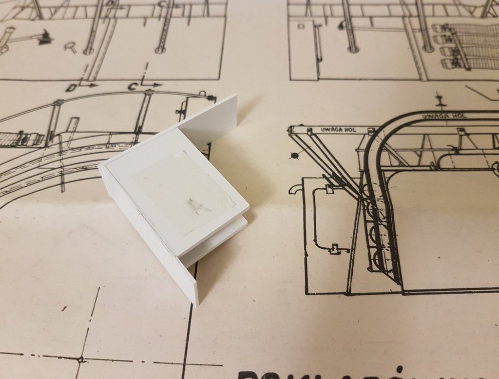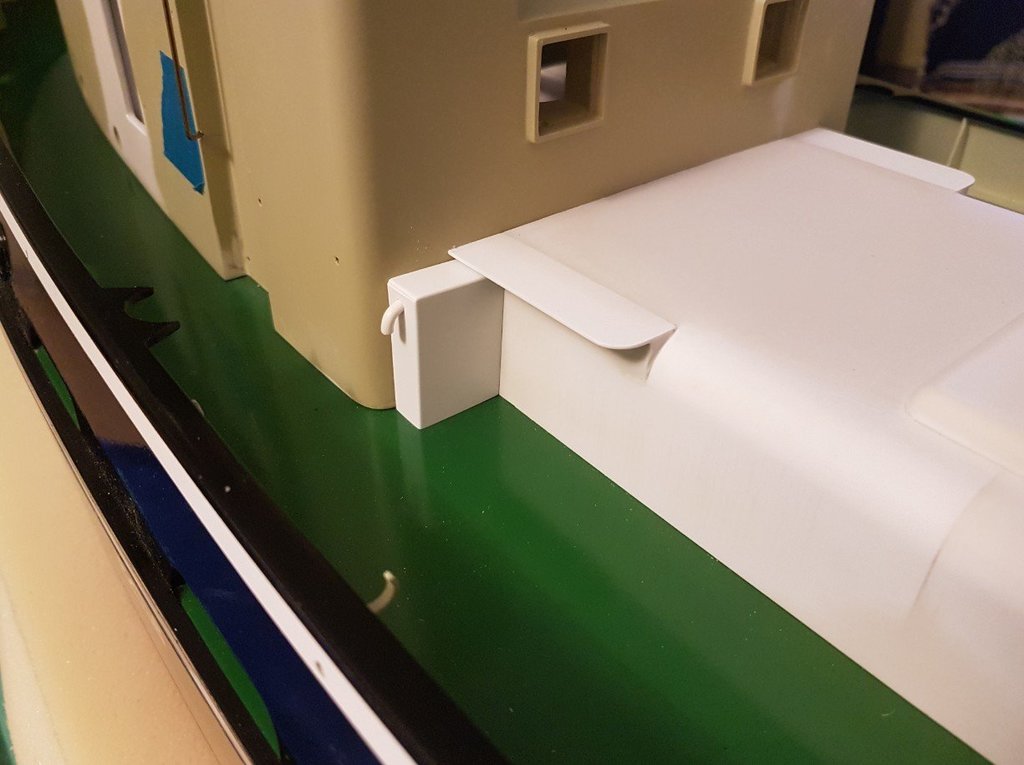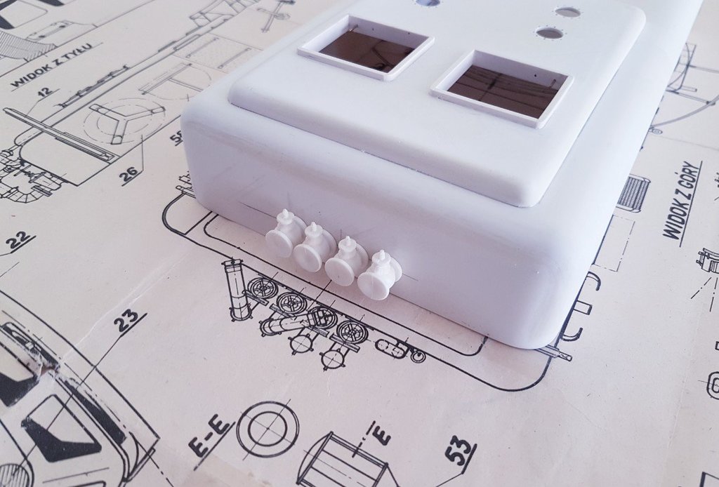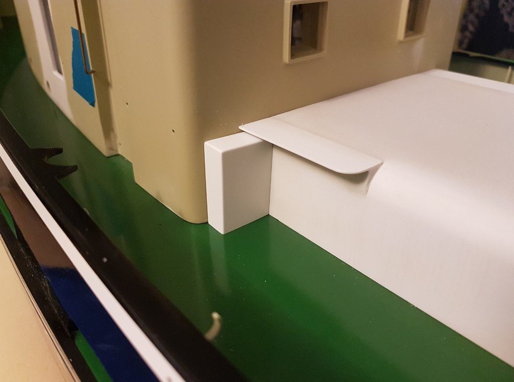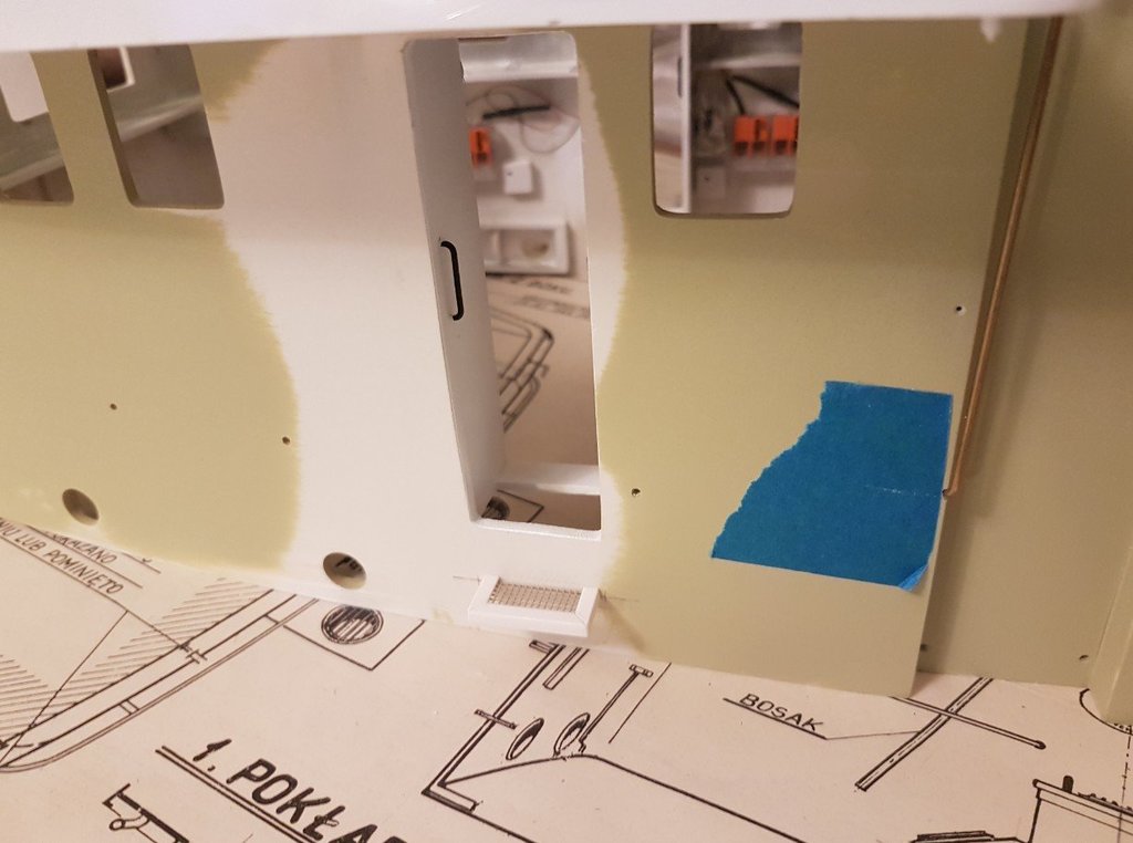 Skrzynka rewizyjna (elektryczna?) przy nadbudówce.... po wklejeniu odpowietrzenia wykonanego z wałka ABS 3 mm .... , i po szpachlowaniu wszystkich styków.... -