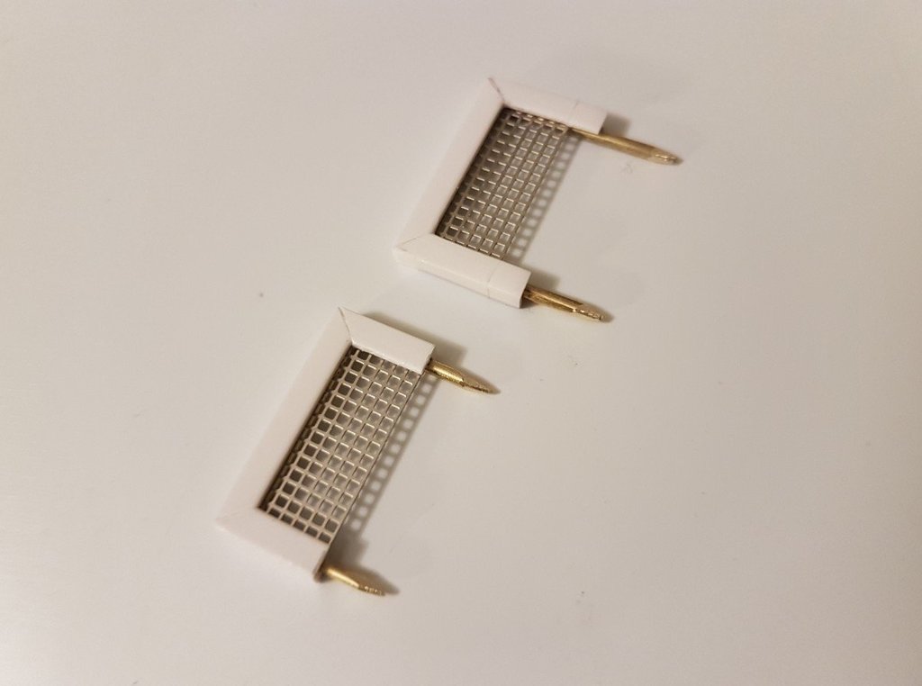 Odpowietrzenie w części rufowej maszynowni. Wałek ABS 4 mm wygięty na ciepło.... Wlew z prawej burty.... na podest stopni użyłem kratki 1x1 mm.... rynny nad otworami wentylacyjnymi wykonane z kątownika ABS 3x3 mm .... -