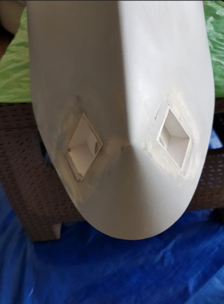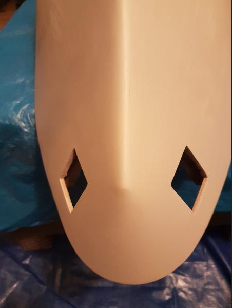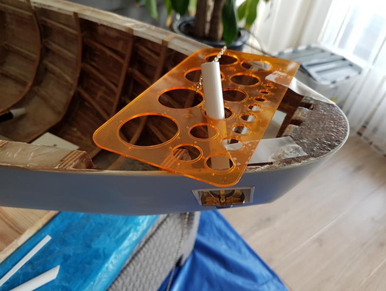 Wycinanie otworów na kluzy kotwiczne szło mi fatalnie. Wcześniejsze trasowanie musiałem pominąć, be jednak nie były tam gdzie powinny. A potem wyciąłem, tam gdzie nie powinienem. W końcu jednak nabrało kształtu. Dopracuję po wklejeniu wnęk -