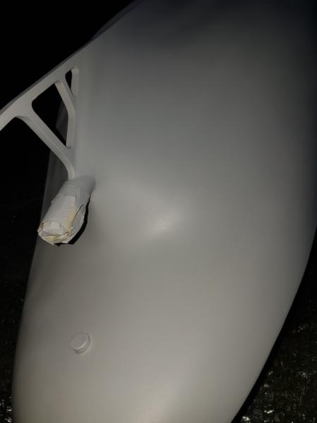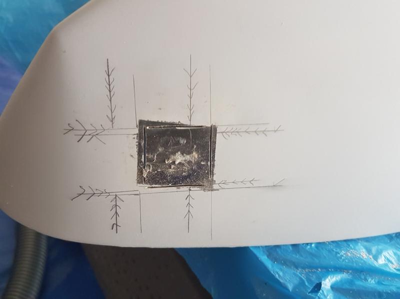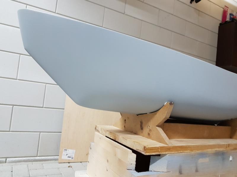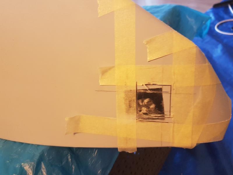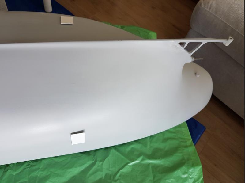 Po szlifowaniu przed nałożeniem podkładu po podkładzie, miejsce przy wale wymaga jednak kosmetycznych poprawek i na transporterze natrasowałem miejsca kluz kotwicznych (nie docisnąłem taśmy - dobra lekcja na przyszłość) i spasowałem mechanizm wciągarek -