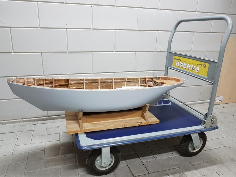 Sprytny ten pierwszy wózek. Na tym drugim, że się nie bał, że zahaczy śrubą. Moj wózek ma przeznaczonie transportowe z garażu do mieszkania. Ale jak ukończę model, to trzeba będzie nad czymś pomyśleć. Szlifowanie poszycia przy wale. Nie jest łatwo. Jeszcze ze dwa wieczory zejdą. -
