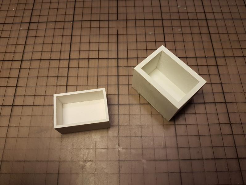 W przerwie zrobiłem elementy wykończeniowe do nadajnika. Po wyschnięciu "szybkoschnącej" farby wkleję je na miejsce i wtedy pokaże to na zdjęciu. Czas na pojemniki na baterie: -