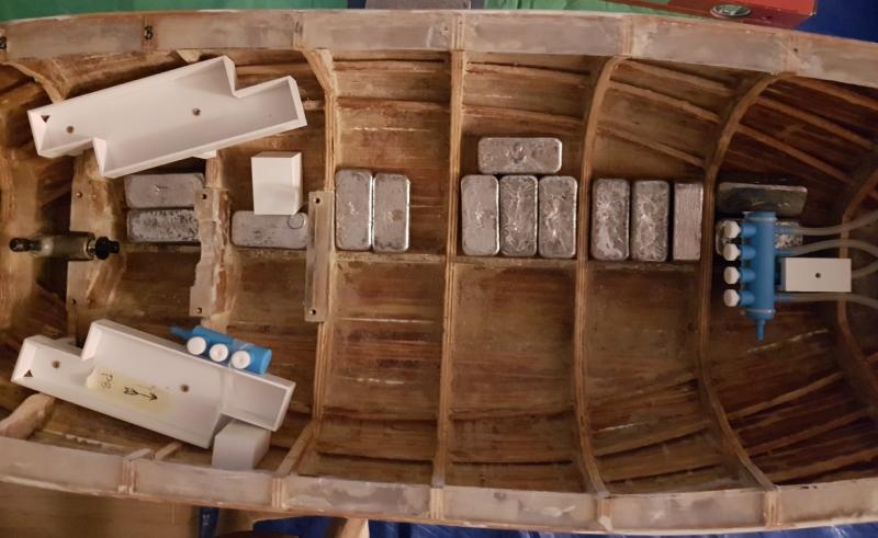 Uwag nie traktuję jak wtrącanie, a jak pomoc, więc nie ma obawy. Jest miejsce "w dnie podwójnym" pomiędzy wręgami. Mieści się tam spokojnie 15 kg, a zakładam, że włożę nie więcej niż 7 kg ołowiu. Przymiarka z 7kg na jednej burcie, a można jeszcze dołożyć bo jest miejsce. -