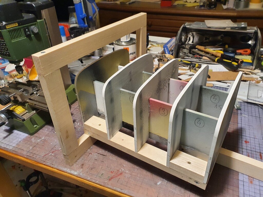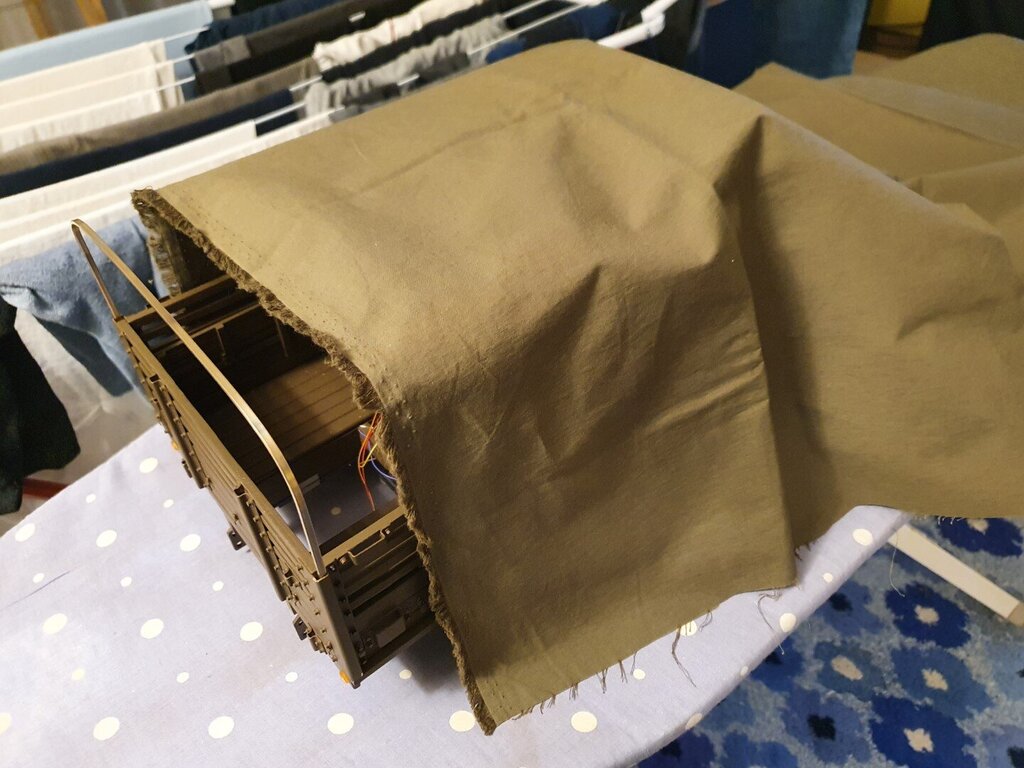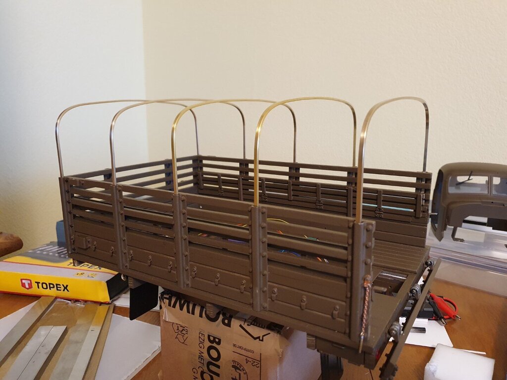 Skrzynia będzie kryta zdejmowaną plandeką.... Stelaż jest z prętów miedzianych 2x3mm. Długość jednego to około 450 mm. Wygiąłem na szablonie wyciętego z płyty..... szablon do szycia plandeki.... W ten sposób w ciągu tygodnia pokazełem efekt mojej czteromiesięcznej pracy. Teraz prace zwolnią, bo brakuje mi serwa do kierownicy i chyba tylko tego. Te które chciałem wykorzystac okazało się jednak za słabe. Dostawa powinna być na dniach. Relacja będzie toczyła się dalej.... -