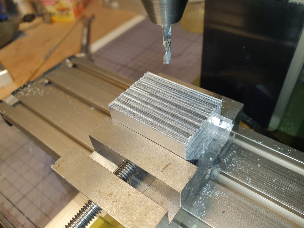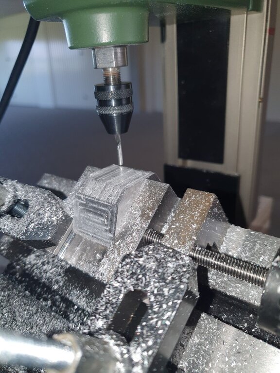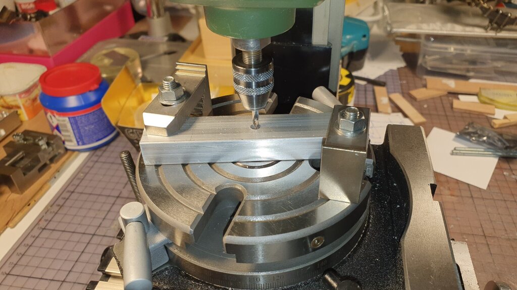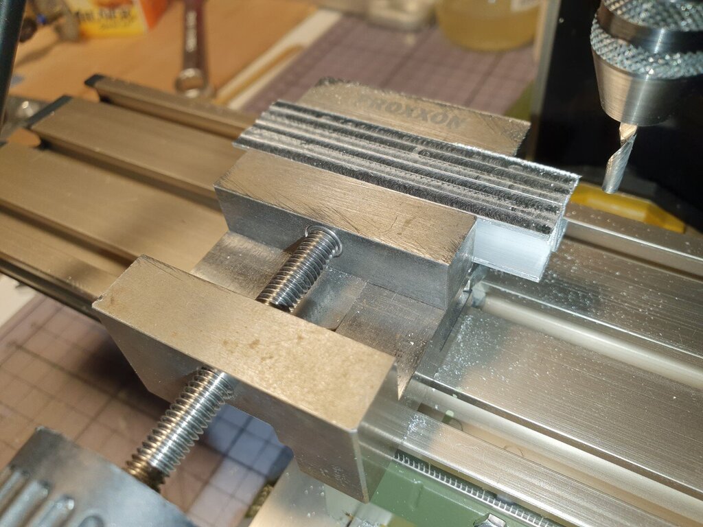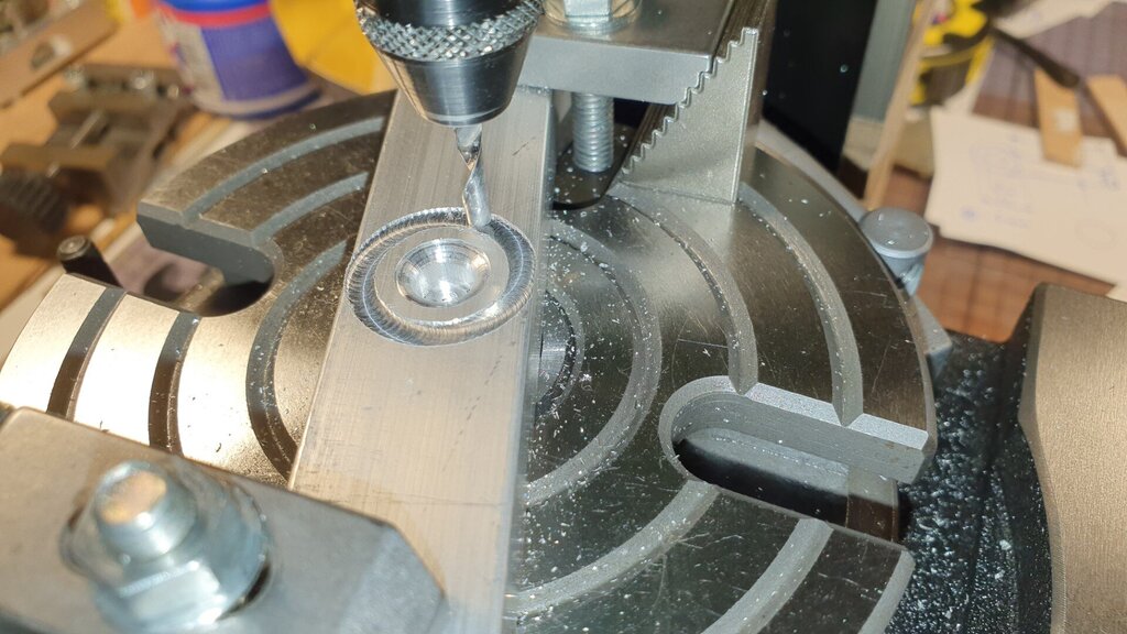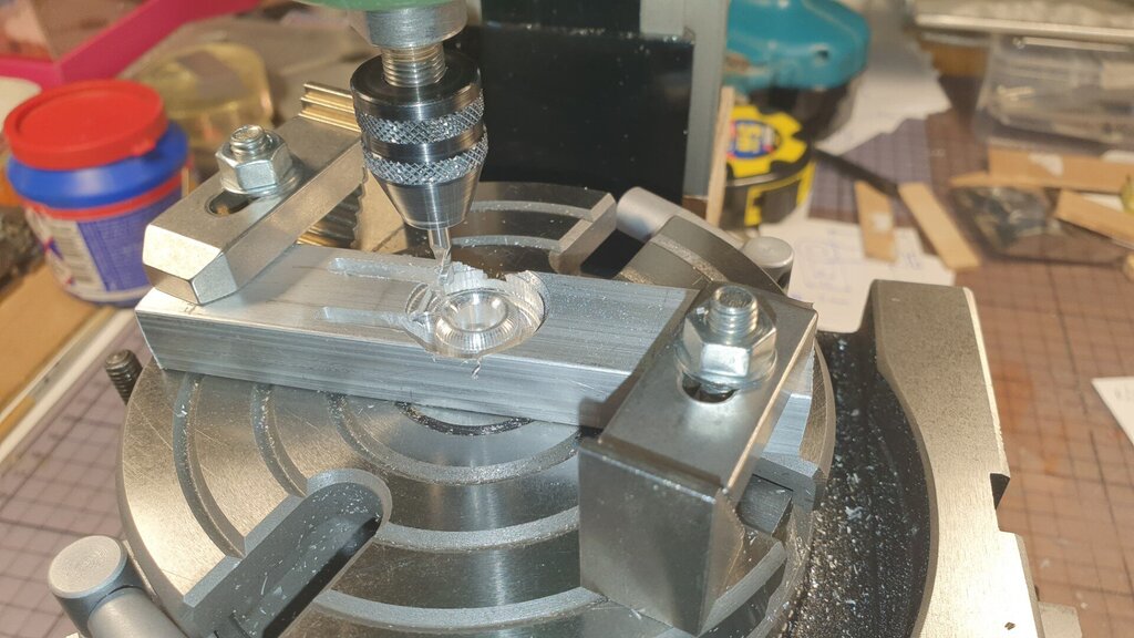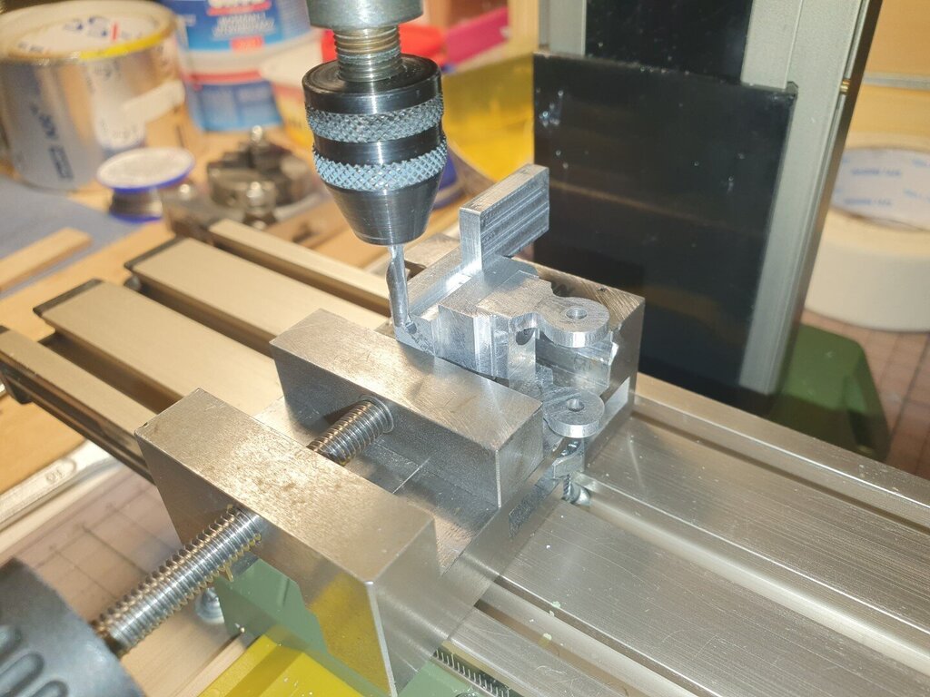 Zaczep przyczepy wyfrezowałem z bloku aluminiowego. Do wykonania użyłem stołu obrotowego średnicy Vevor 100. Dołożony do frezarki Proxxon MF70 świetnie się spisuje .... Teraz mając dwie strony zaczepu mogę zrobić lemiesz. -