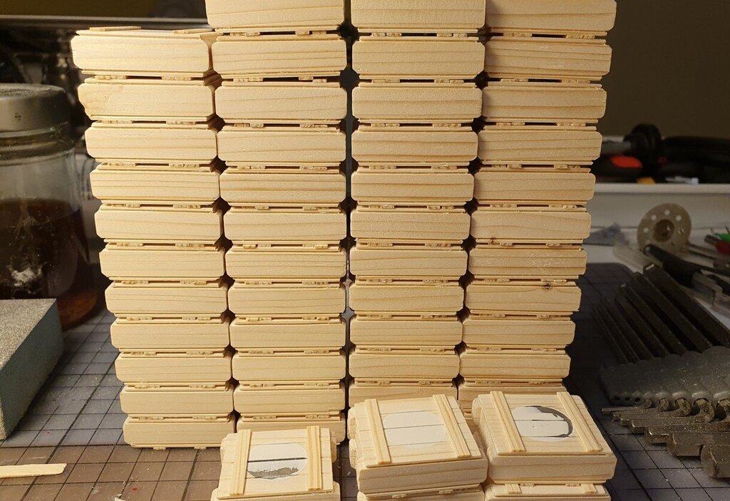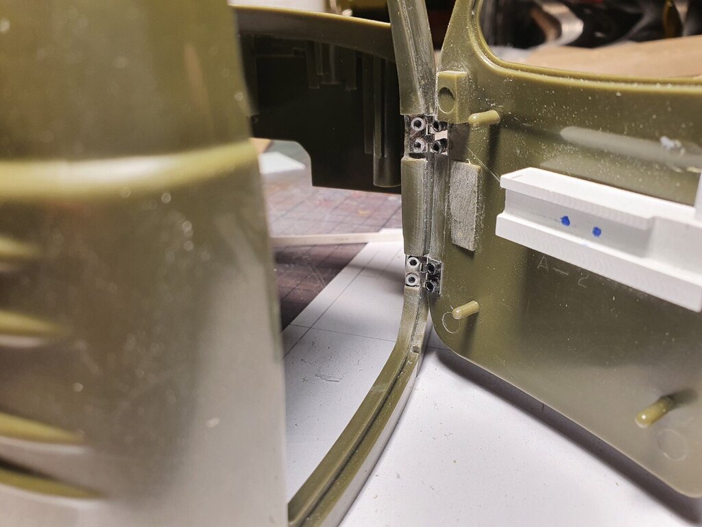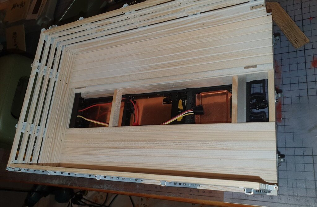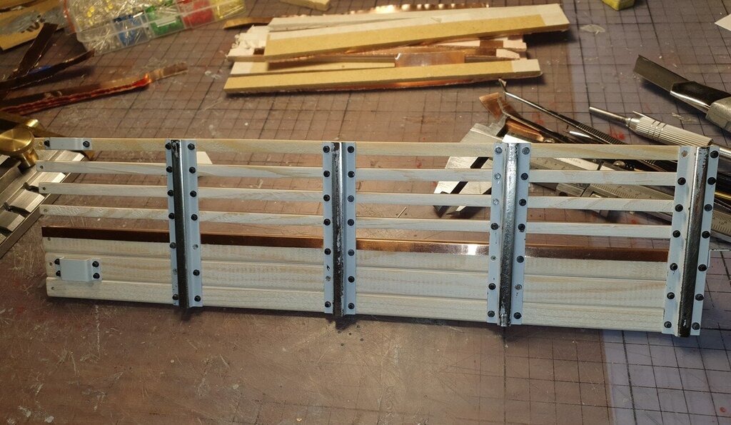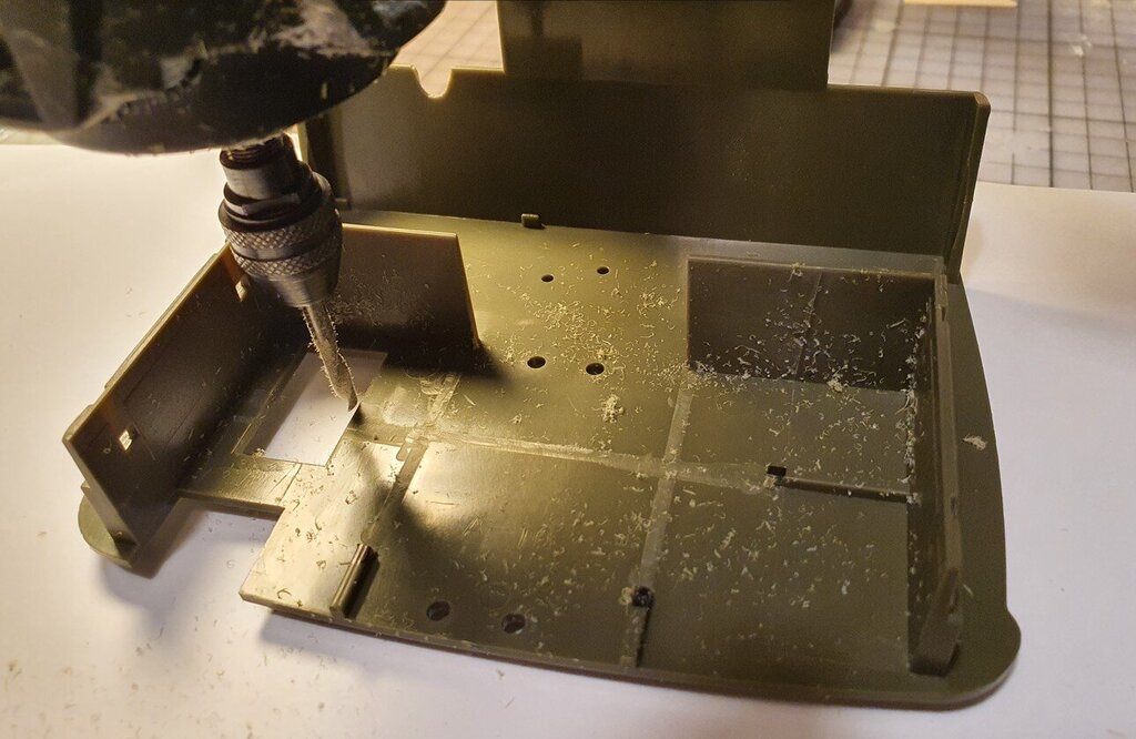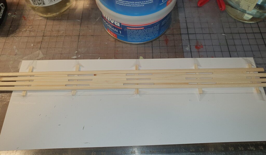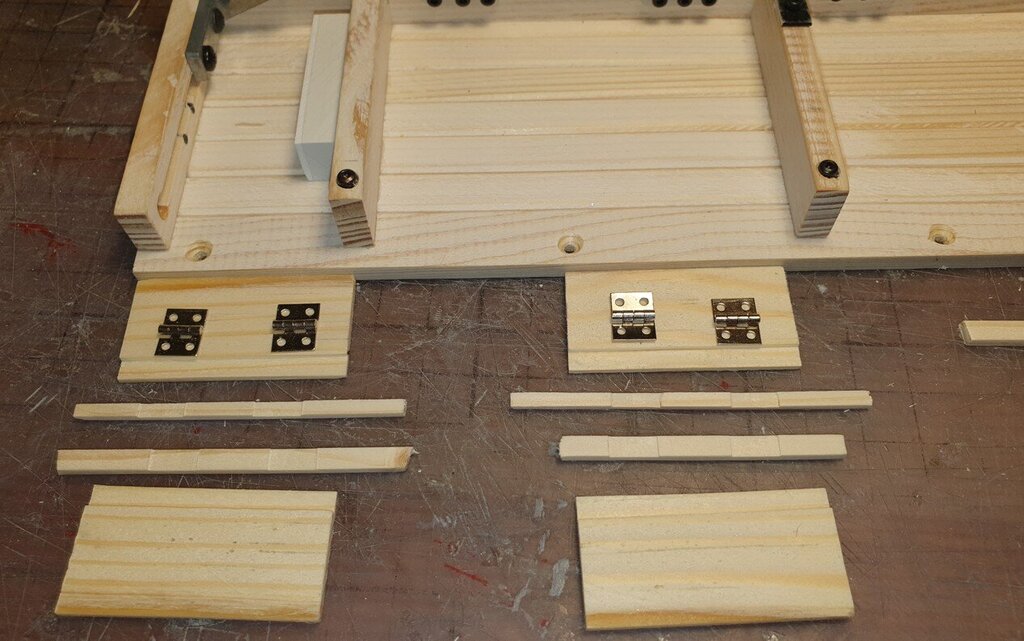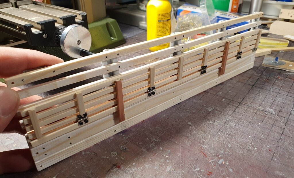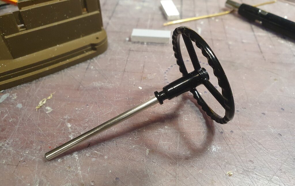 Fajne spostrzeżenie ???. Skrzynia z modelu posłużyła mi jak wzór. Całą wykonałem z listewek drewnianych. Wyeliminowałem wzmocnienia w postaci kątowników. Przestrzeń pod skrzynią wykorzystam na elementy elektryczne. W modelu bateria jest w skrzyni na pace. W moim modelu to wyeliminowałem. Nic nie będzie widoczne i wszystko będzie zmyślnie ukryte. Wygląd elemetów skrzyni z zestawu.... Pociąłem deseczki na listewki i nawierciłem otwory do skręcenia. Niektóre dlistewki sa klejone... Pomalowałem podkładem.... Nafrezowałem rowki pod kabelki do oświetlenia..... Dopasowanie to plastikowej podłogi skrzyni... Wyfrezowałem blaszki do zamocowania ramy skrzyni... Tu schowek na baterię.... środkowa część podłogi jesy odsuwana i unoszona do góry. Spasowanie jest na klik.... Po założeniu nie ma śladu, że coś jest zdejmowane.... okucia do stelażu plandeki.... klocki, dla skręcenia burt to podłogi skrzyni... listewki na podwyższenie burt skrzyni.... Dzięki tej modyfikacji rant skrzyni wystaje ppoza krawędź burty. W modelu oryginalnym burty się licują. Przygotowanie do montażu rury wydechowej. Planuję, że będzie dym... rura z rurki miedzinej z rozwalcowaną końcówką.... mocowanie dla rury wydechowej... dodatkowe otwory, umożliwiające montaż skrzyni.... Zrobiłem też ławki na skrzyni dla żołnierzy. Ławki są składane.... składane podpórki ławeczek.... zrobiłem skrzynki mocowane pod podłogą w tylnej cześci.... zrobiłem z blachy miedzinaej 1 mm przednie chlapacze skrzyni. Chciałem, aby wyglądały tak jak tylnie.... zrobiłem szablon do wyszlifowania półwałków z pręta PCV... zamknięcie do tylnie klapy... Przeciągnąłem kabelki do oświetlenia. Użyłem ledów.... Krawędzie burt wzmocniłem blachą. Blacha miedziana 0.1 mm wygiąłem na super giętarce. Kupienie jej nie moge jednak nazwać faktem przyjemnym. Ale to nie temat na to forum. Proponuję tylko się dobrze zastanowić przed zamówieniem giętarki u Pana, który je produkuje. widoczne haczyki dla sznurków plandeki.... Krótki film z działania wciagarki.... 20220115_182626.mp4 Krótki film z działania wałów... 20211010-003815-naped - reduced.mp4 Krótki film ze składanej ławeczki... 20220105_222408.mp4 -