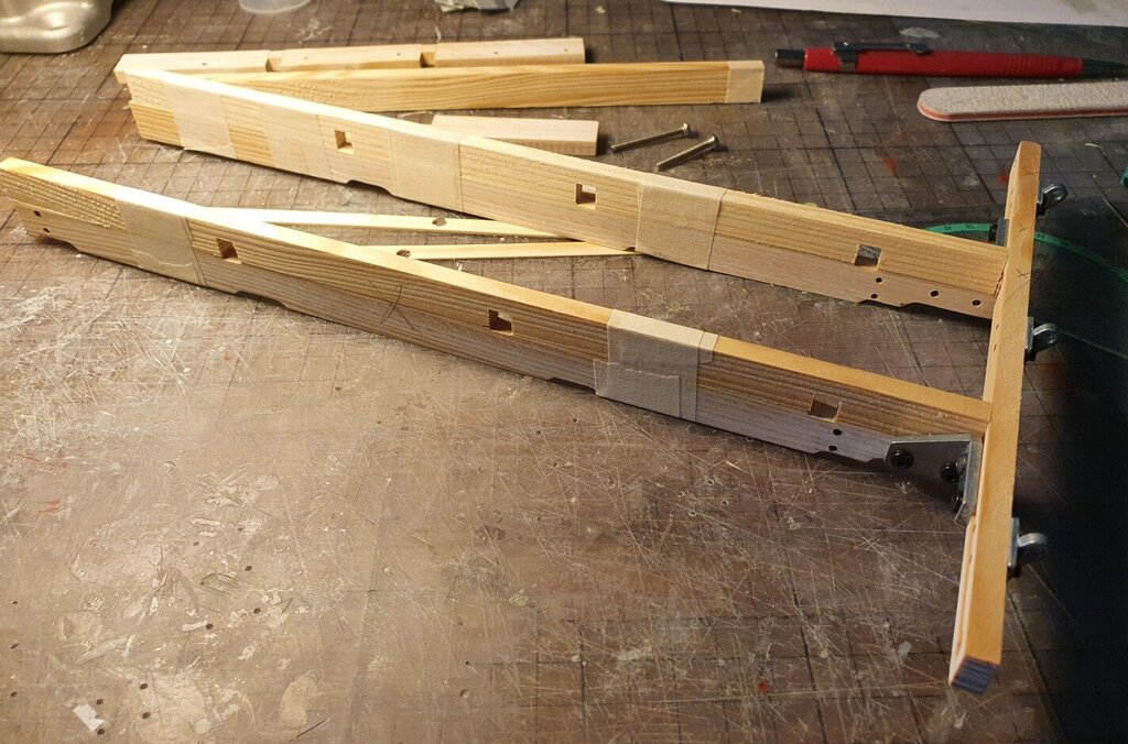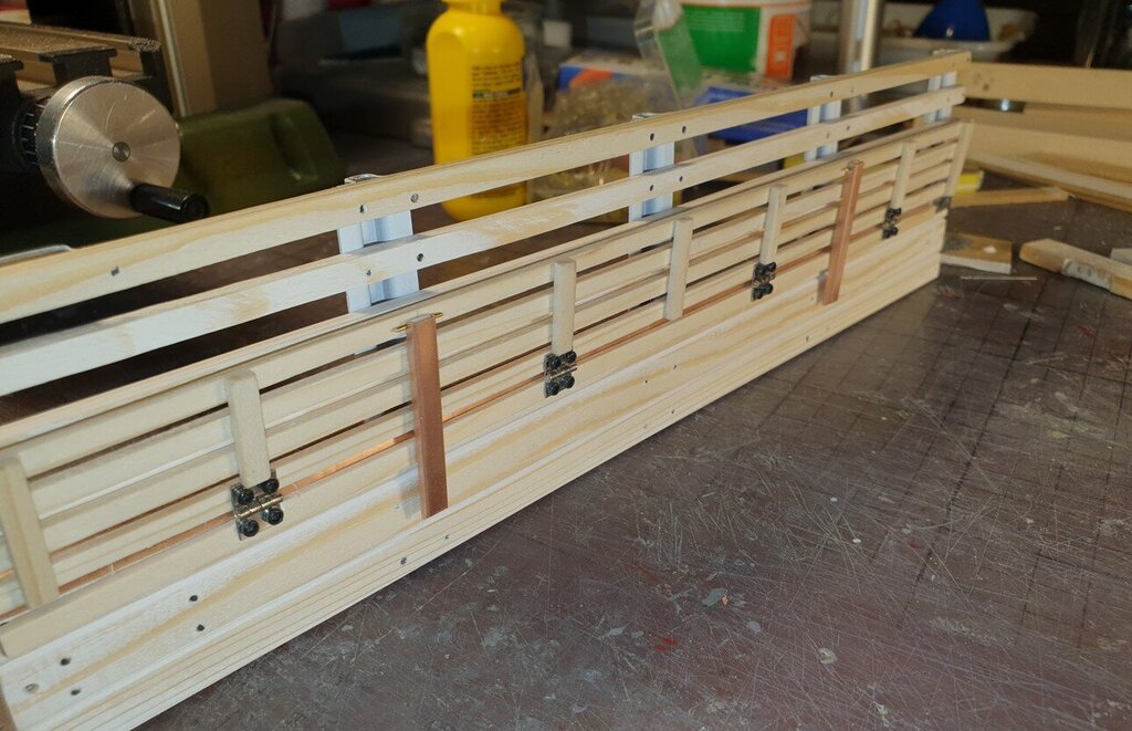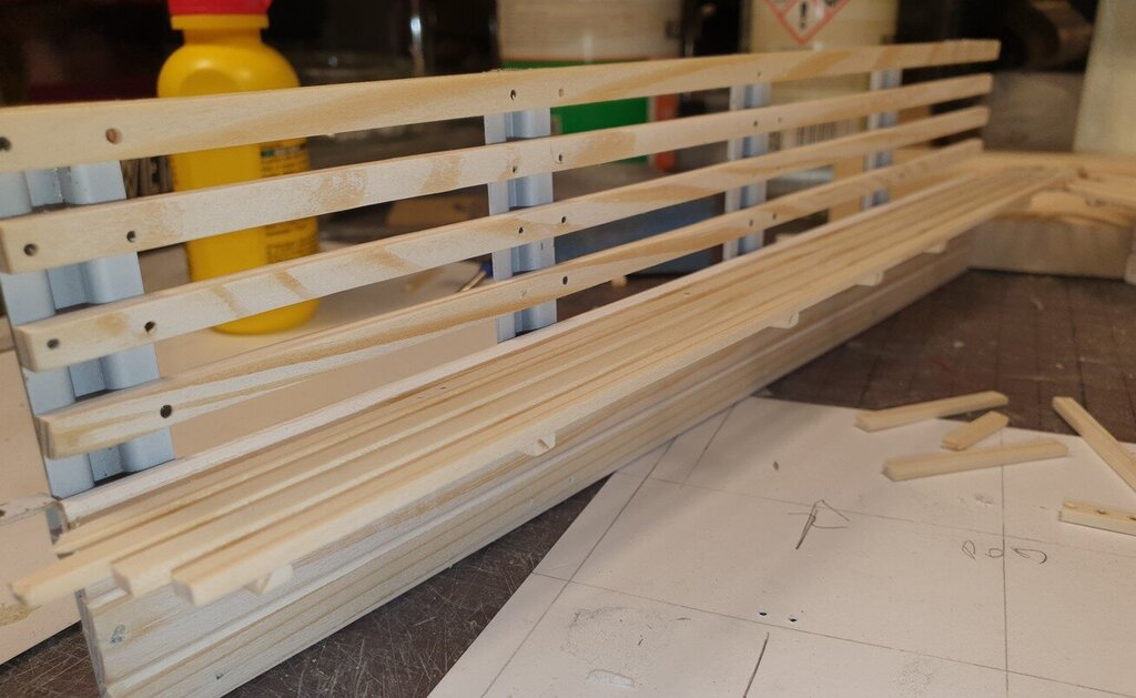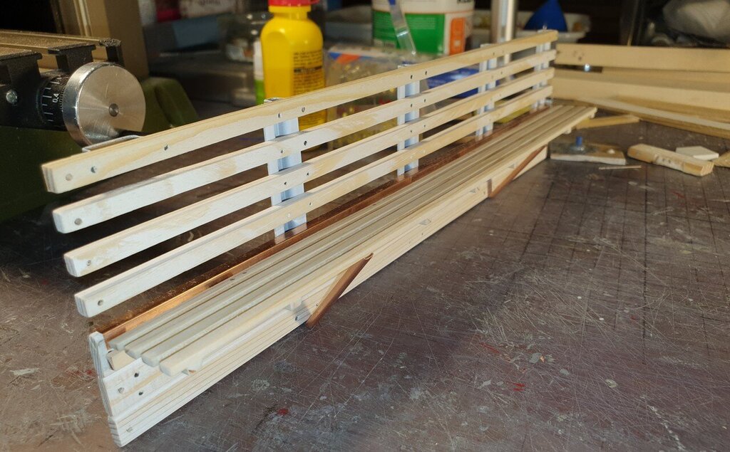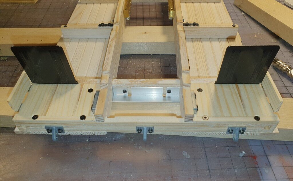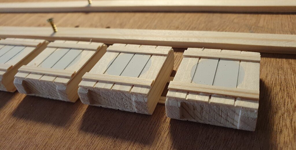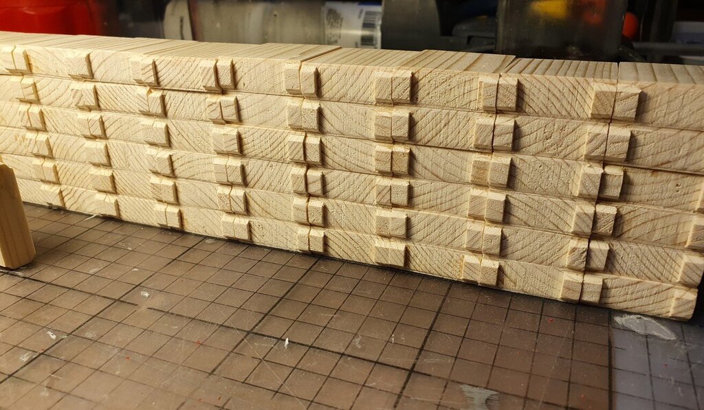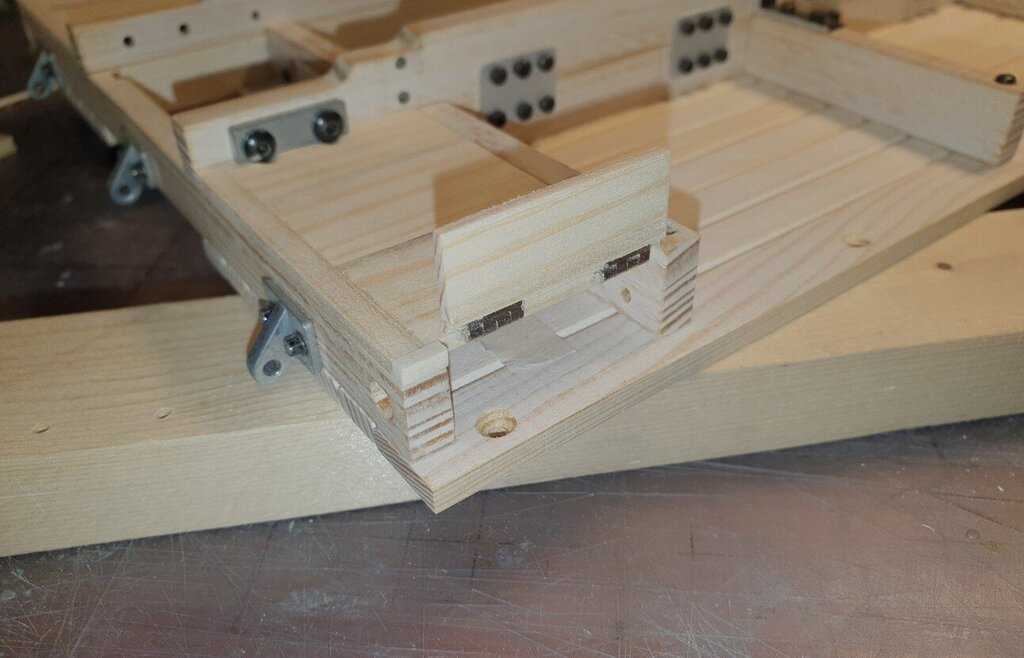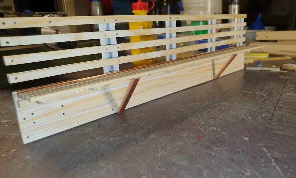 Fajne spostrzeżenie ???. Skrzynia z modelu posłużyła mi jak wzór. Całą wykonałem z listewek drewnianych. Wyeliminowałem wzmocnienia w postaci kątowników. Przestrzeń pod skrzynią wykorzystam na elementy elektryczne. W modelu bateria jest w skrzyni na pace. W moim modelu to wyeliminowałem. Nic nie będzie widoczne i wszystko będzie zmyślnie ukryte. Wygląd elemetów skrzyni z zestawu.... Pociąłem deseczki na listewki i nawierciłem otwory do skręcenia. Niektóre dlistewki sa klejone... Pomalowałem podkładem.... Nafrezowałem rowki pod kabelki do oświetlenia..... Dopasowanie to plastikowej podłogi skrzyni... Wyfrezowałem blaszki do zamocowania ramy skrzyni... Tu schowek na baterię.... środkowa część podłogi jesy odsuwana i unoszona do góry. Spasowanie jest na klik.... Po założeniu nie ma śladu, że coś jest zdejmowane.... okucia do stelażu plandeki.... klocki, dla skręcenia burt to podłogi skrzyni... listewki na podwyższenie burt skrzyni.... Dzięki tej modyfikacji rant skrzyni wystaje ppoza krawędź burty. W modelu oryginalnym burty się licują. Przygotowanie do montażu rury wydechowej. Planuję, że będzie dym... rura z rurki miedzinej z rozwalcowaną końcówką.... mocowanie dla rury wydechowej... dodatkowe otwory, umożliwiające montaż skrzyni.... Zrobiłem też ławki na skrzyni dla żołnierzy. Ławki są składane.... składane podpórki ławeczek.... zrobiłem skrzynki mocowane pod podłogą w tylnej cześci.... zrobiłem z blachy miedzinaej 1 mm przednie chlapacze skrzyni. Chciałem, aby wyglądały tak jak tylnie.... zrobiłem szablon do wyszlifowania półwałków z pręta PCV... zamknięcie do tylnie klapy... Przeciągnąłem kabelki do oświetlenia. Użyłem ledów.... Krawędzie burt wzmocniłem blachą. Blacha miedziana 0.1 mm wygiąłem na super giętarce. Kupienie jej nie moge jednak nazwać faktem przyjemnym. Ale to nie temat na to forum. Proponuję tylko się dobrze zastanowić przed zamówieniem giętarki u Pana, który je produkuje. widoczne haczyki dla sznurków plandeki.... Krótki film z działania wciagarki.... 20220115_182626.mp4 Krótki film z działania wałów... 20211010-003815-naped - reduced.mp4 Krótki film ze składanej ławeczki... 20220105_222408.mp4 -