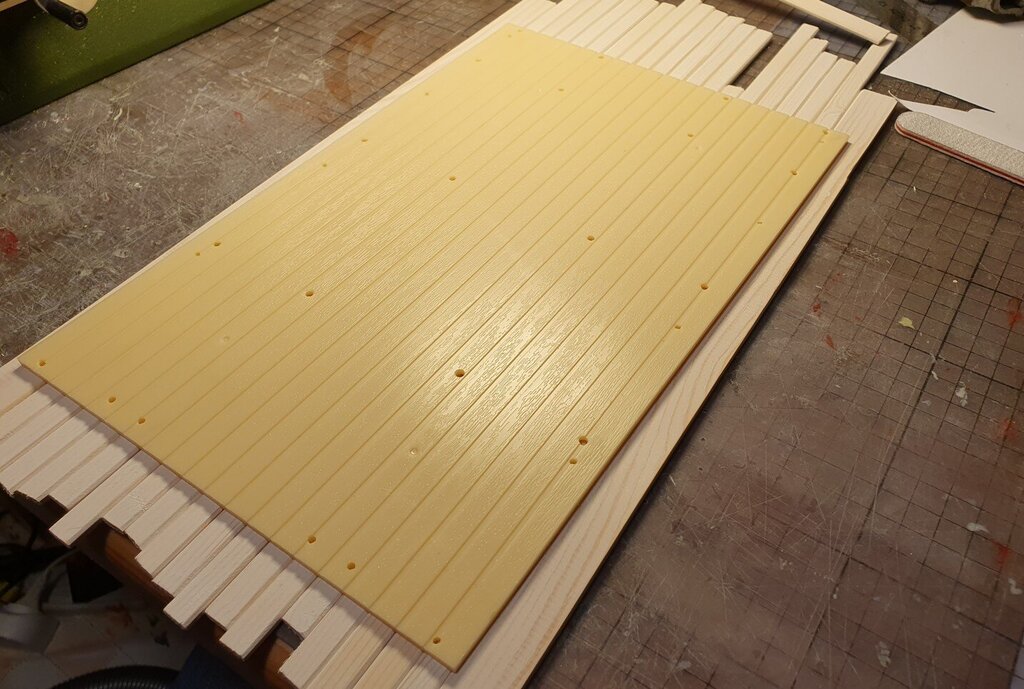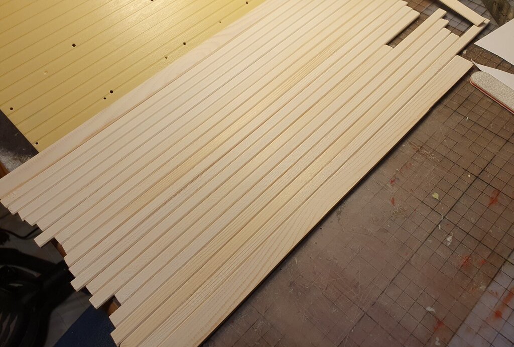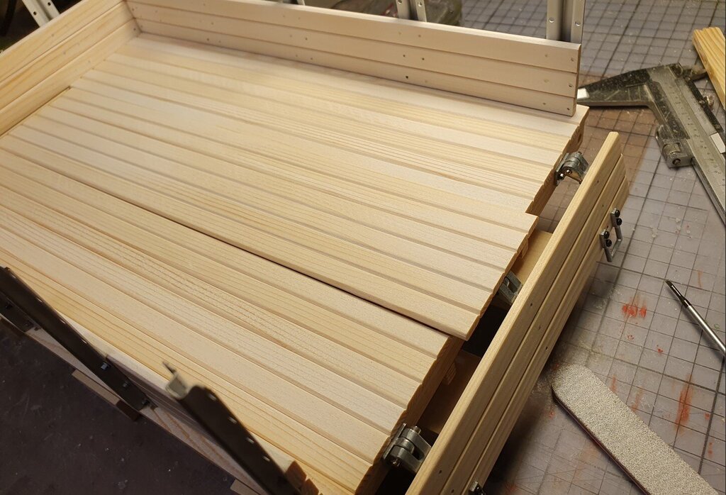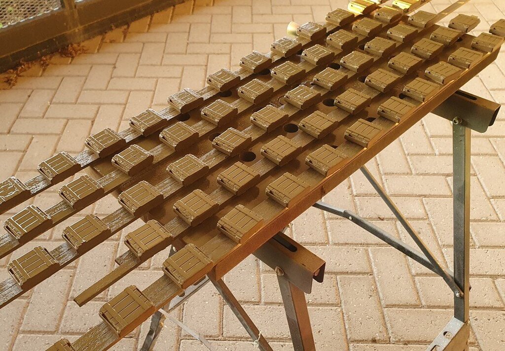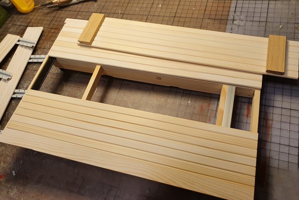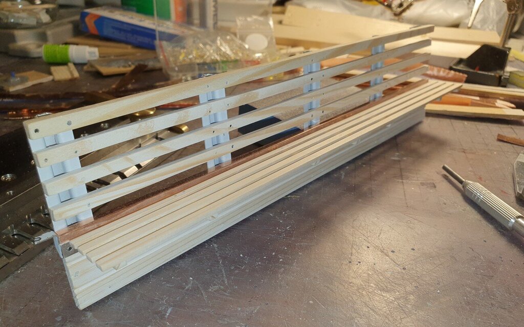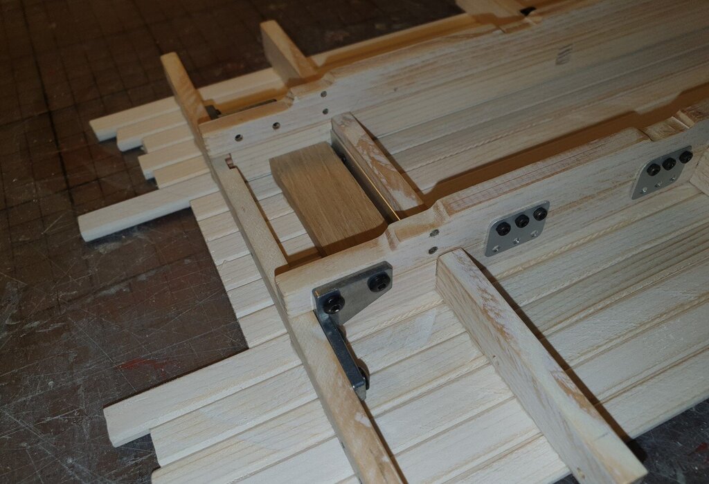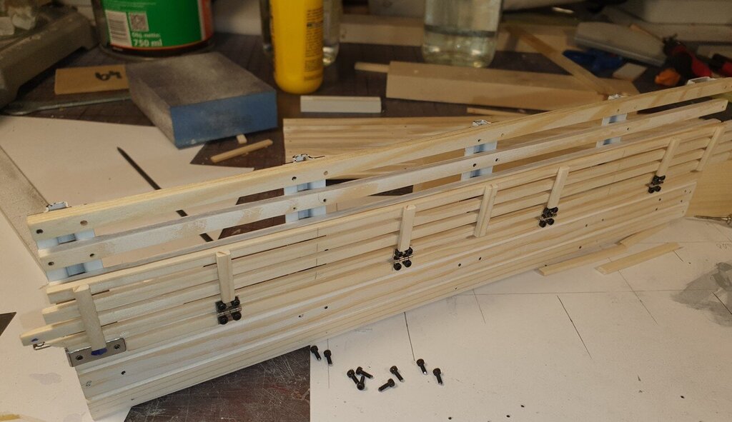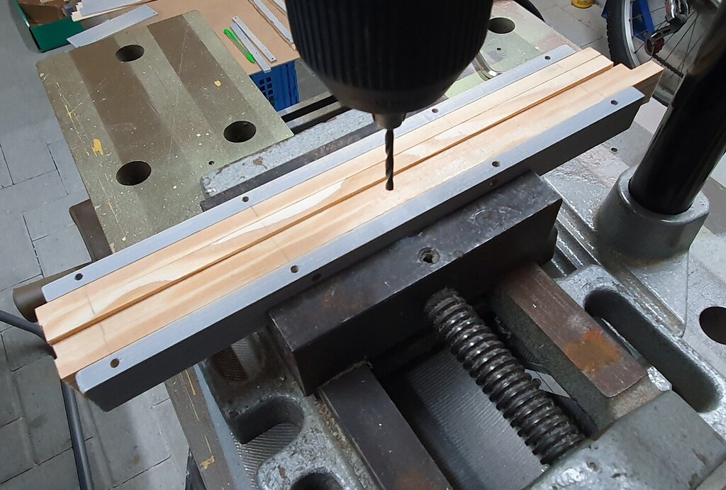 Fajne spostrzeżenie ???. Skrzynia z modelu posłużyła mi jak wzór. Całą wykonałem z listewek drewnianych. Wyeliminowałem wzmocnienia w postaci kątowników. Przestrzeń pod skrzynią wykorzystam na elementy elektryczne. W modelu bateria jest w skrzyni na pace. W moim modelu to wyeliminowałem. Nic nie będzie widoczne i wszystko będzie zmyślnie ukryte. Wygląd elemetów skrzyni z zestawu.... Pociąłem deseczki na listewki i nawierciłem otwory do skręcenia. Niektóre dlistewki sa klejone... Pomalowałem podkładem.... Nafrezowałem rowki pod kabelki do oświetlenia..... Dopasowanie to plastikowej podłogi skrzyni... Wyfrezowałem blaszki do zamocowania ramy skrzyni... Tu schowek na baterię.... środkowa część podłogi jesy odsuwana i unoszona do góry. Spasowanie jest na klik.... Po założeniu nie ma śladu, że coś jest zdejmowane.... okucia do stelażu plandeki.... klocki, dla skręcenia burt to podłogi skrzyni... listewki na podwyższenie burt skrzyni.... Dzięki tej modyfikacji rant skrzyni wystaje ppoza krawędź burty. W modelu oryginalnym burty się licują. Przygotowanie do montażu rury wydechowej. Planuję, że będzie dym... rura z rurki miedzinej z rozwalcowaną końcówką.... mocowanie dla rury wydechowej... dodatkowe otwory, umożliwiające montaż skrzyni.... Zrobiłem też ławki na skrzyni dla żołnierzy. Ławki są składane.... składane podpórki ławeczek.... zrobiłem skrzynki mocowane pod podłogą w tylnej cześci.... zrobiłem z blachy miedzinaej 1 mm przednie chlapacze skrzyni. Chciałem, aby wyglądały tak jak tylnie.... zrobiłem szablon do wyszlifowania półwałków z pręta PCV... zamknięcie do tylnie klapy... Przeciągnąłem kabelki do oświetlenia. Użyłem ledów.... Krawędzie burt wzmocniłem blachą. Blacha miedziana 0.1 mm wygiąłem na super giętarce. Kupienie jej nie moge jednak nazwać faktem przyjemnym. Ale to nie temat na to forum. Proponuję tylko się dobrze zastanowić przed zamówieniem giętarki u Pana, który je produkuje. widoczne haczyki dla sznurków plandeki.... Krótki film z działania wciagarki.... 20220115_182626.mp4 Krótki film z działania wałów... 20211010-003815-naped - reduced.mp4 Krótki film ze składanej ławeczki... 20220105_222408.mp4 -