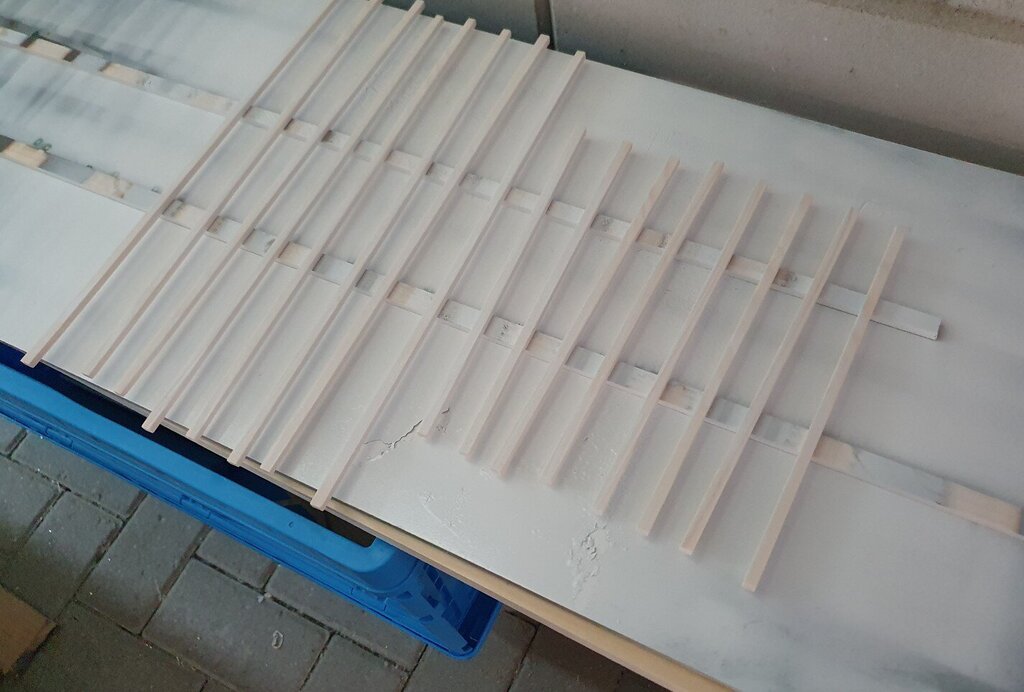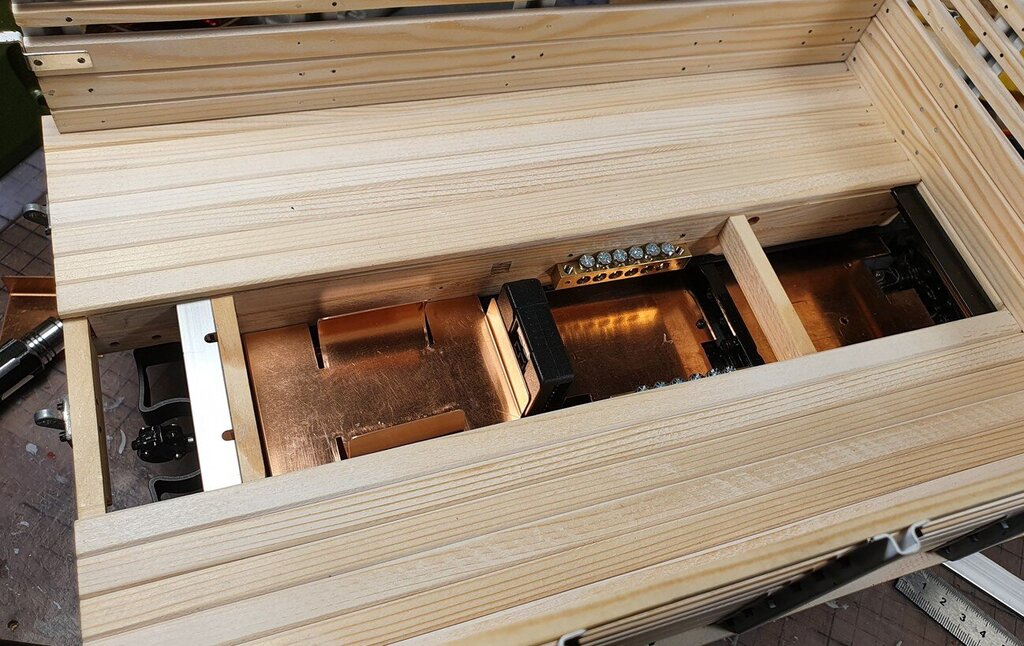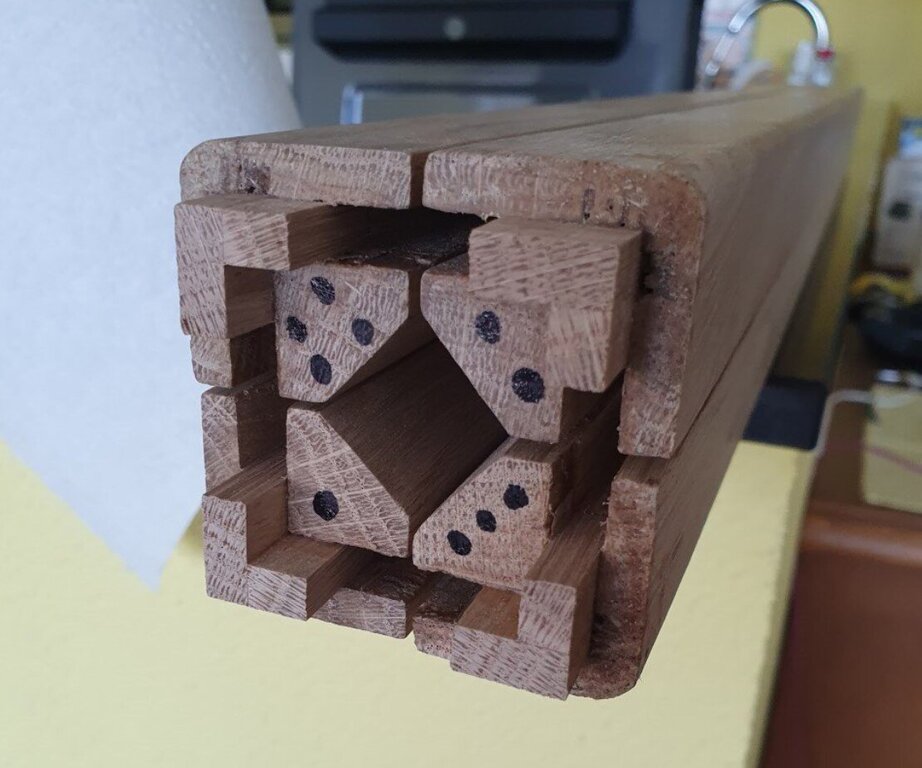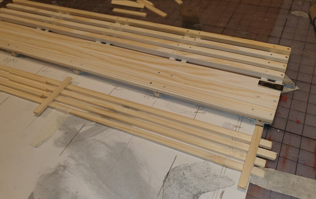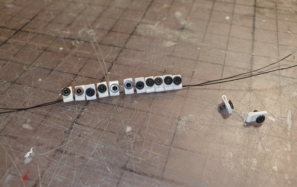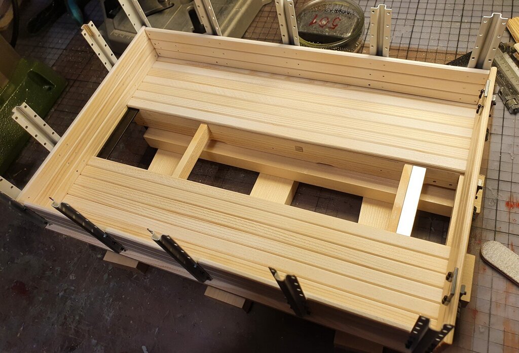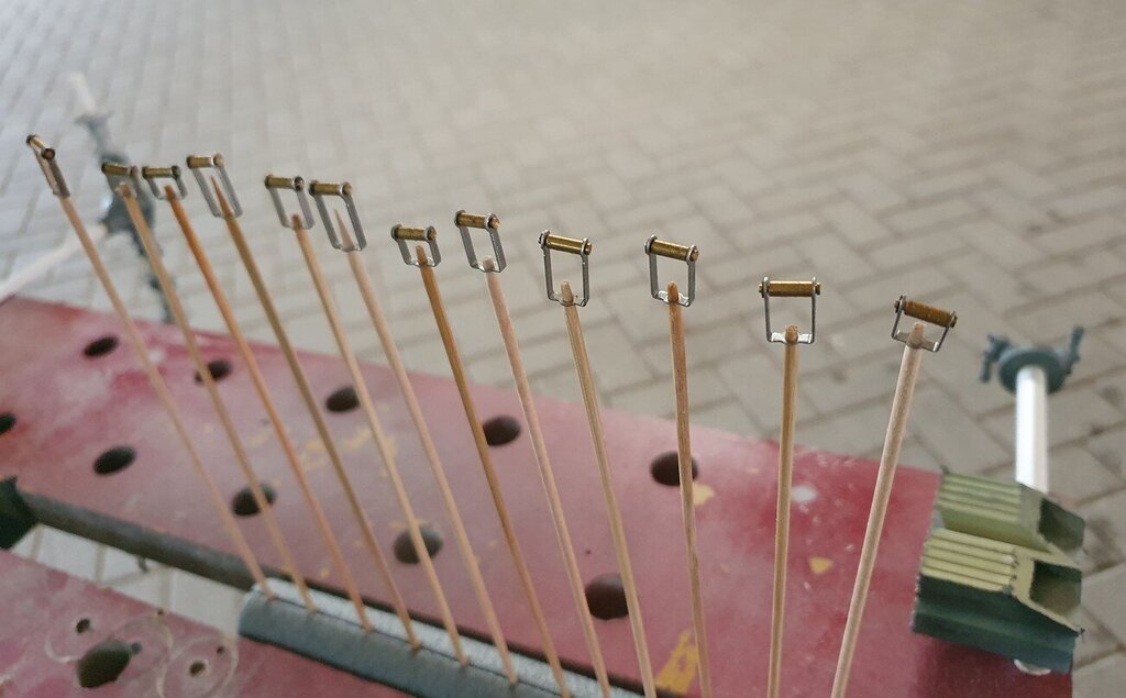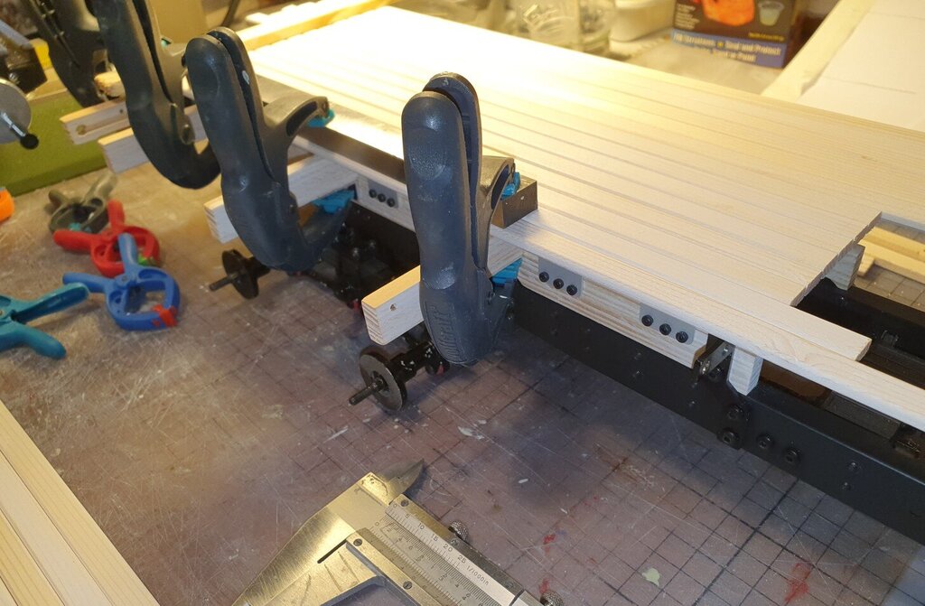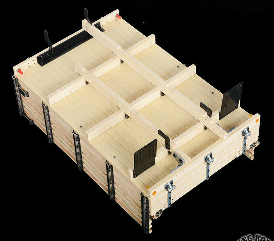 Fajne spostrzeżenie ???. Skrzynia z modelu posłużyła mi jak wzór. Całą wykonałem z listewek drewnianych. Wyeliminowałem wzmocnienia w postaci kątowników. Przestrzeń pod skrzynią wykorzystam na elementy elektryczne. W modelu bateria jest w skrzyni na pace. W moim modelu to wyeliminowałem. Nic nie będzie widoczne i wszystko będzie zmyślnie ukryte. Wygląd elemetów skrzyni z zestawu.... Pociąłem deseczki na listewki i nawierciłem otwory do skręcenia. Niektóre dlistewki sa klejone... Pomalowałem podkładem.... Nafrezowałem rowki pod kabelki do oświetlenia..... Dopasowanie to plastikowej podłogi skrzyni... Wyfrezowałem blaszki do zamocowania ramy skrzyni... Tu schowek na baterię.... środkowa część podłogi jesy odsuwana i unoszona do góry. Spasowanie jest na klik.... Po założeniu nie ma śladu, że coś jest zdejmowane.... okucia do stelażu plandeki.... klocki, dla skręcenia burt to podłogi skrzyni... listewki na podwyższenie burt skrzyni.... Dzięki tej modyfikacji rant skrzyni wystaje ppoza krawędź burty. W modelu oryginalnym burty się licują. Przygotowanie do montażu rury wydechowej. Planuję, że będzie dym... rura z rurki miedzinej z rozwalcowaną końcówką.... mocowanie dla rury wydechowej... dodatkowe otwory, umożliwiające montaż skrzyni.... Zrobiłem też ławki na skrzyni dla żołnierzy. Ławki są składane.... składane podpórki ławeczek.... zrobiłem skrzynki mocowane pod podłogą w tylnej cześci.... zrobiłem z blachy miedzinaej 1 mm przednie chlapacze skrzyni. Chciałem, aby wyglądały tak jak tylnie.... zrobiłem szablon do wyszlifowania półwałków z pręta PCV... zamknięcie do tylnie klapy... Przeciągnąłem kabelki do oświetlenia. Użyłem ledów.... Krawędzie burt wzmocniłem blachą. Blacha miedziana 0.1 mm wygiąłem na super giętarce. Kupienie jej nie moge jednak nazwać faktem przyjemnym. Ale to nie temat na to forum. Proponuję tylko się dobrze zastanowić przed zamówieniem giętarki u Pana, który je produkuje. widoczne haczyki dla sznurków plandeki.... Krótki film z działania wciagarki.... 20220115_182626.mp4 Krótki film z działania wałów... 20211010-003815-naped - reduced.mp4 Krótki film ze składanej ławeczki... 20220105_222408.mp4 -