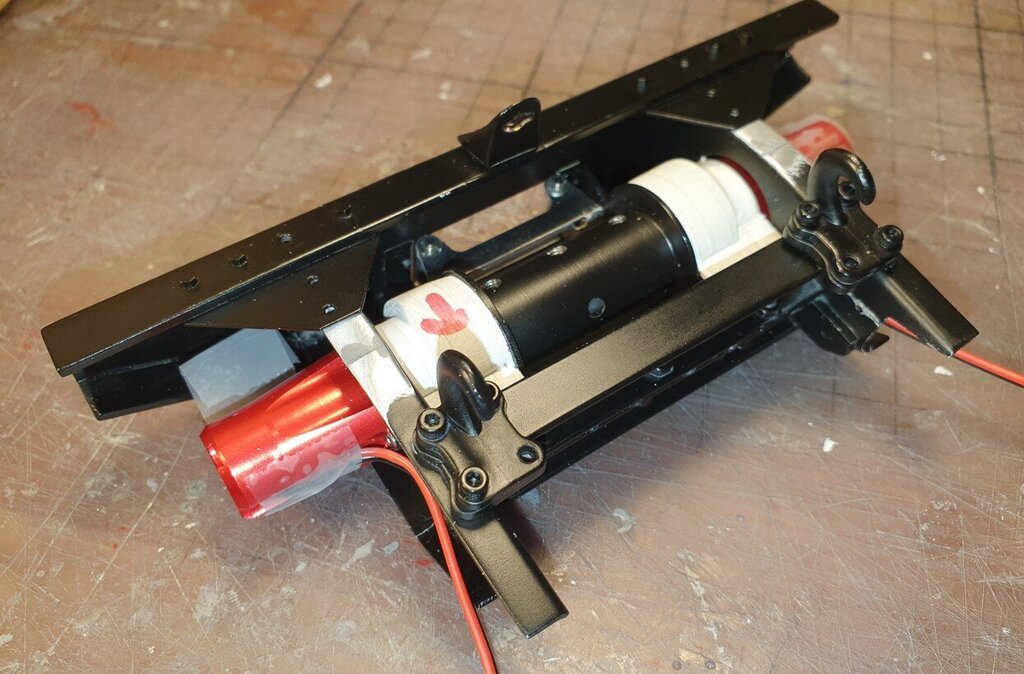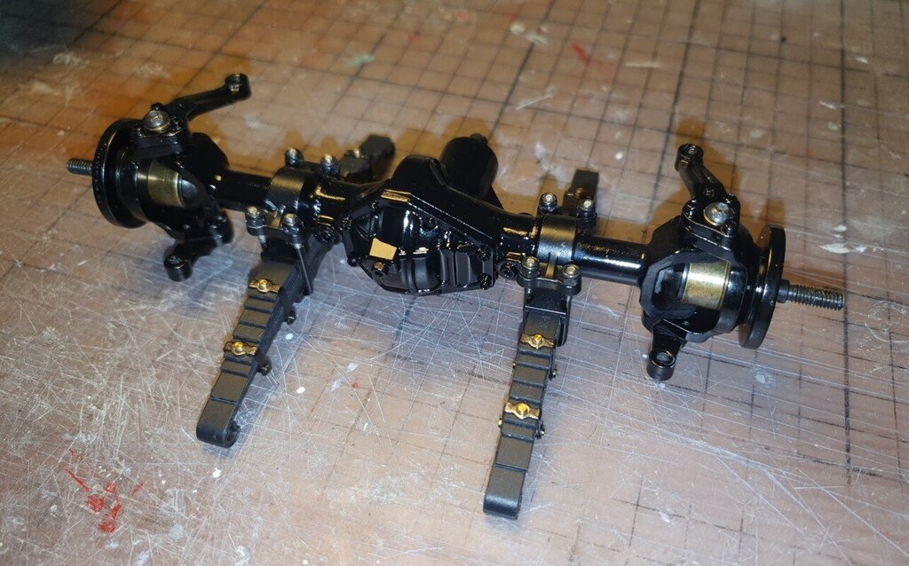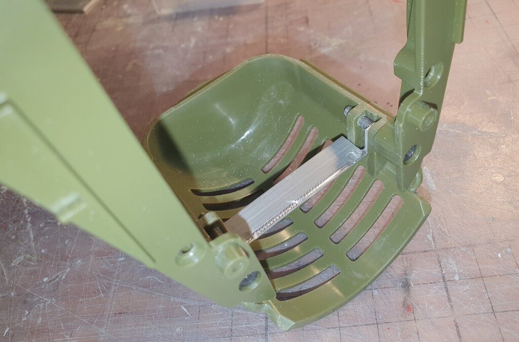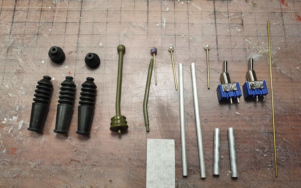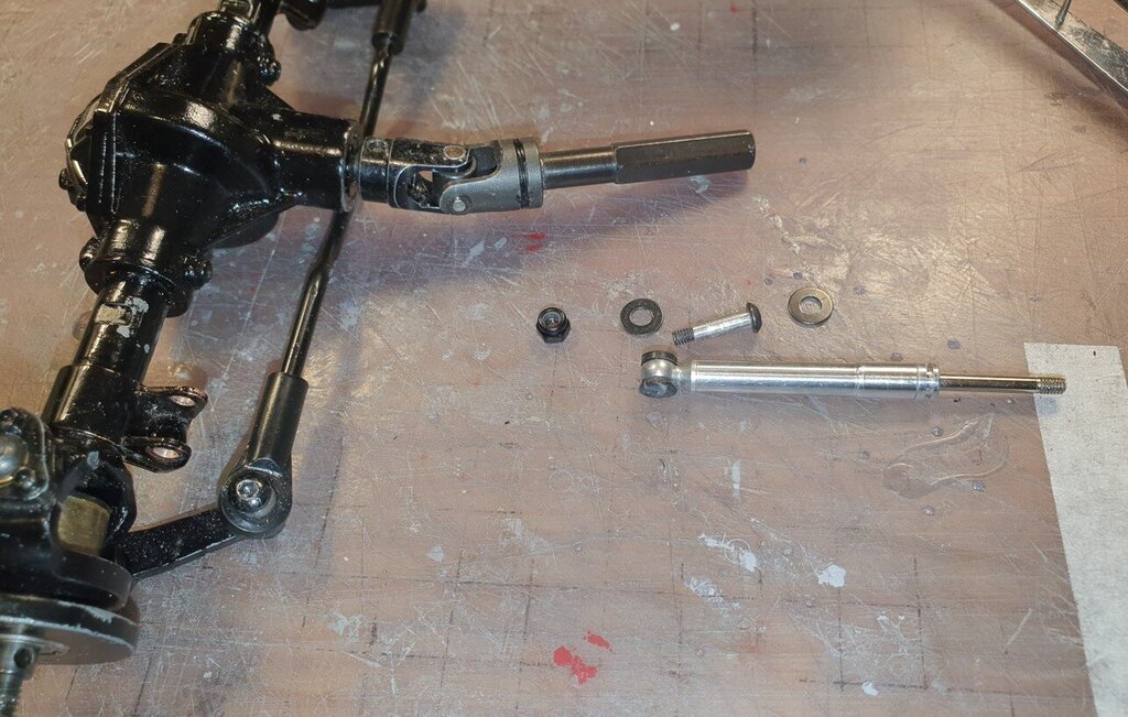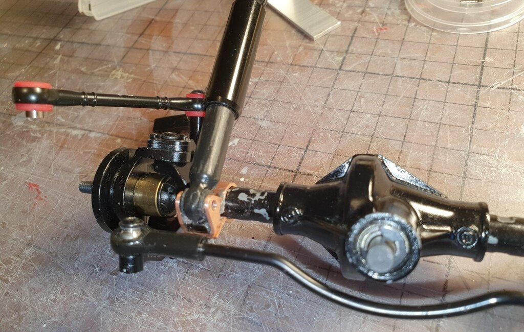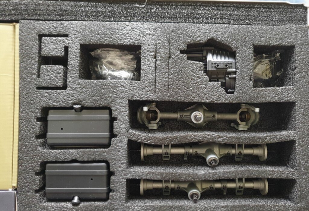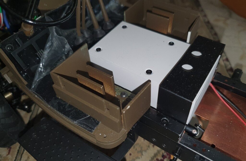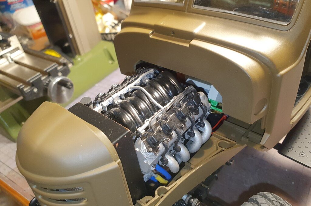 Oczywiście zapraszam do oglądania. W oryginale na wyjściu z przekładni jest wał sztywny. Trudno było to spasować, przez co napęd mocno hałasował... Zamieniłem go na wał z kardanem. Długość wału 45-52 mm... Po zmontowaniu napęd pracuje bezszelestnie. Jest super.... W międzyczasie zobaczyłem co jest w przekładni. Obudowa metalowa, koła zębate metalowe, łożyska kulowe na wałach głównych i pośrednich. wszystko wypełnione smarem. Zmontowałem z powrotem bo wszystko było jak powinno być. Tu drobne elementy, które były odłamane i przez to model był mocno preceniony.... Klamek np są 4 sztuki. Stweirdziłem,że zrobię ziła bardziej bojowego i podniosłem kabinę o 10 mm. W tym celu użyłem aluminiowy profil C. Wygiąłem go w imadle i przyciąłem na wymiar... Dodakowe podłużnice pomalowałem na czarny półmat. Widoczne blaszki do przykręcenia podłużnicy do ramy oraz uchwyt do ESC napędu głównego... Założyłem silnik 6V, 540, 80T. Zależało mi, aby model miał możliwość pełzania. Prędkość maksymalna jest także odpowiednia... Podniesienie szoferki wymusiło dołożenie chlapaczy do błotników przednich. Wykorzystałem chlapacze od modelu HG P801... Dzięki podniesieniu mam miejsce na założenie przednich amortyzatorów... Nabyłem dość dobrze wykonane amortyzatory powitrzne, jako, że będą one w zasadzie dekoracją.... Obudowy pomalowałem na czarno.... Użyte serwo.... Tu wcześniejsze próby z amortyzatorami od HG P801.... Teraz pokażę jak zrobiłem uchwyty do amortyzatorów. Użyłem blachy miedzianej 0,5 mm.... Zdfjęcia z amortyzatorami na wcześniejszem etapie przed zmianą. Wydały mi się one zbyt masywne... Uchwyt do ESC. Skrywa także włącznik ESC. Całość zamontowana na serwie skrętu... Rama w całej okazałości.... Model duży, ale miejscem za bardzo nie mogę szastać, bo jednak wyposażenia planuję troche w niego włożyć. Wprowadzone zmiany dały wolne miejsce pomiędzy szoferką, a skrzynią. Postanowiłem zamontować tam kanistry. Wykorzystałem gotowce. Wykonałem tylko uchwyty. Z blachy miedzianej 0.3 mm pociąłem paski.... -