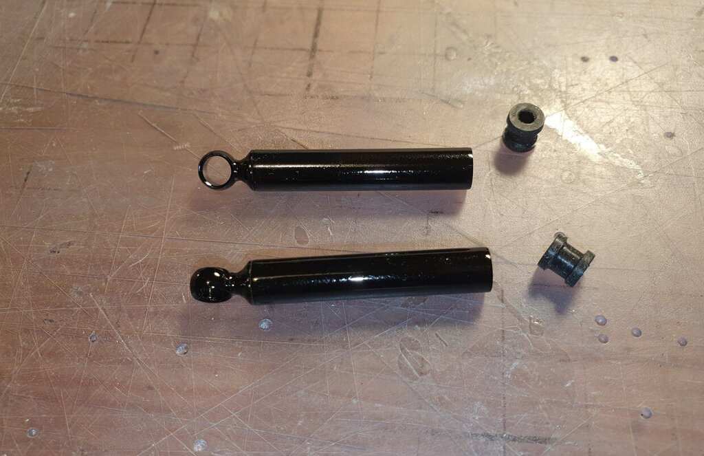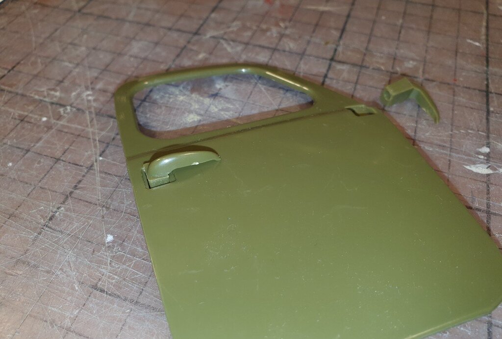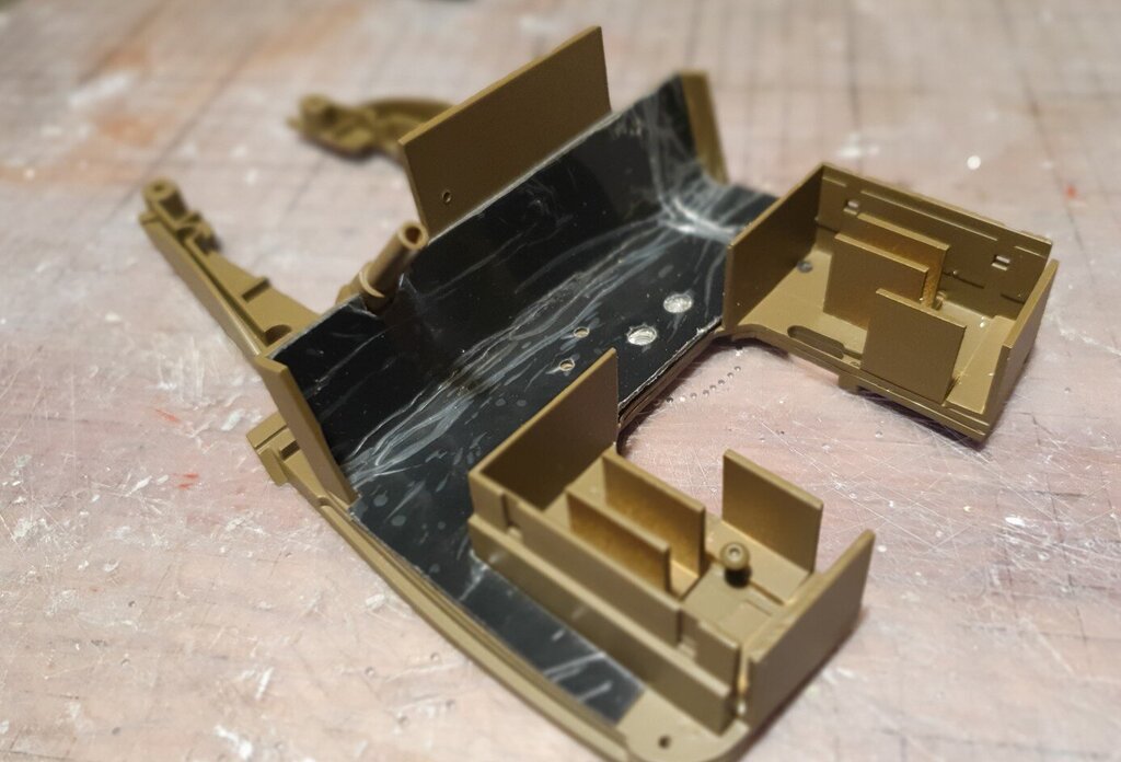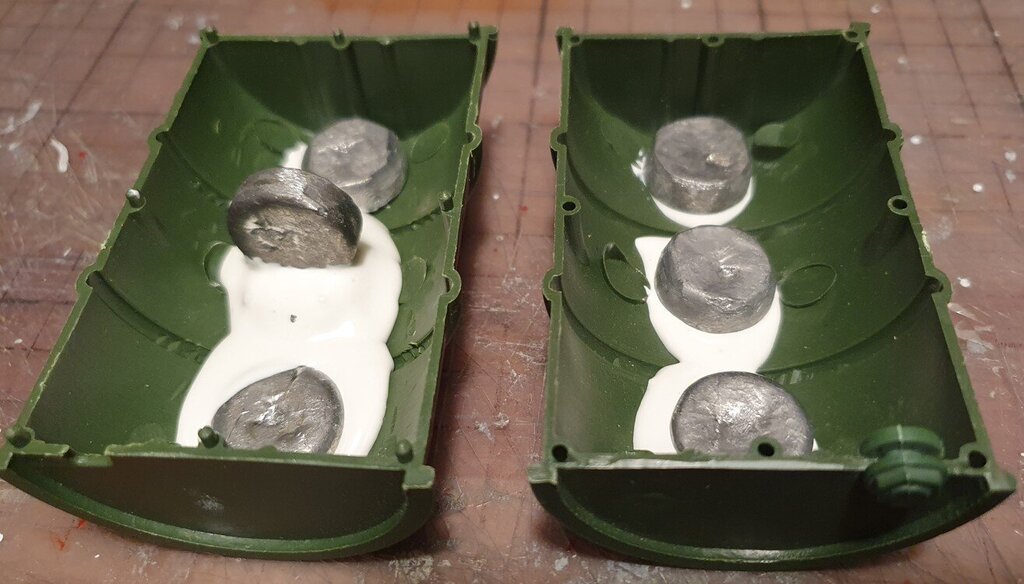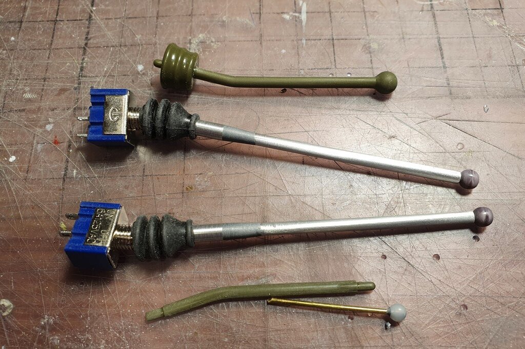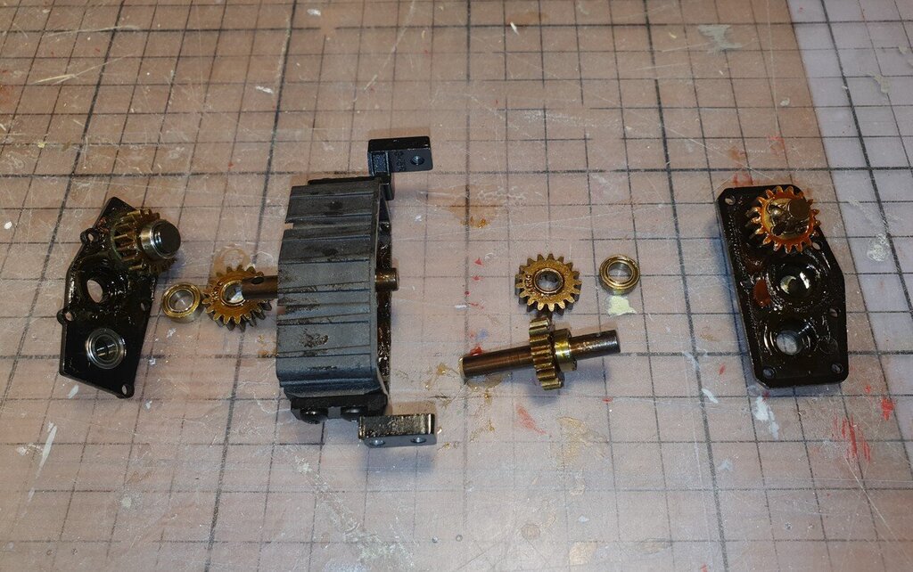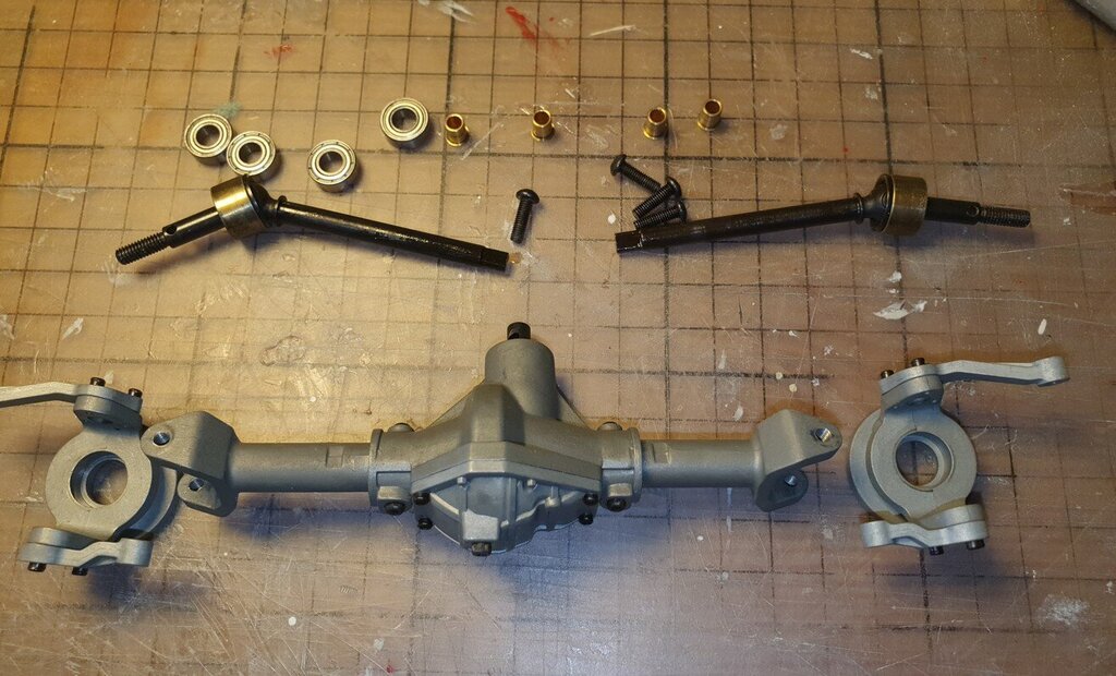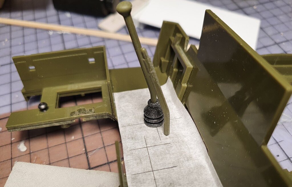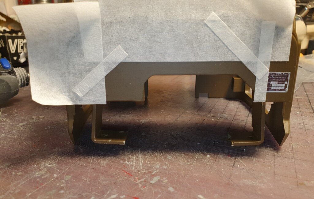 Oczywiście zapraszam do oglądania. W oryginale na wyjściu z przekładni jest wał sztywny. Trudno było to spasować, przez co napęd mocno hałasował... Zamieniłem go na wał z kardanem. Długość wału 45-52 mm... Po zmontowaniu napęd pracuje bezszelestnie. Jest super.... W międzyczasie zobaczyłem co jest w przekładni. Obudowa metalowa, koła zębate metalowe, łożyska kulowe na wałach głównych i pośrednich. wszystko wypełnione smarem. Zmontowałem z powrotem bo wszystko było jak powinno być. Tu drobne elementy, które były odłamane i przez to model był mocno preceniony.... Klamek np są 4 sztuki. Stweirdziłem,że zrobię ziła bardziej bojowego i podniosłem kabinę o 10 mm. W tym celu użyłem aluminiowy profil C. Wygiąłem go w imadle i przyciąłem na wymiar... Dodakowe podłużnice pomalowałem na czarny półmat. Widoczne blaszki do przykręcenia podłużnicy do ramy oraz uchwyt do ESC napędu głównego... Założyłem silnik 6V, 540, 80T. Zależało mi, aby model miał możliwość pełzania. Prędkość maksymalna jest także odpowiednia... Podniesienie szoferki wymusiło dołożenie chlapaczy do błotników przednich. Wykorzystałem chlapacze od modelu HG P801... Dzięki podniesieniu mam miejsce na założenie przednich amortyzatorów... Nabyłem dość dobrze wykonane amortyzatory powitrzne, jako, że będą one w zasadzie dekoracją.... Obudowy pomalowałem na czarno.... Użyte serwo.... Tu wcześniejsze próby z amortyzatorami od HG P801.... Teraz pokażę jak zrobiłem uchwyty do amortyzatorów. Użyłem blachy miedzianej 0,5 mm.... Zdfjęcia z amortyzatorami na wcześniejszem etapie przed zmianą. Wydały mi się one zbyt masywne... Uchwyt do ESC. Skrywa także włącznik ESC. Całość zamontowana na serwie skrętu... Rama w całej okazałości.... Model duży, ale miejscem za bardzo nie mogę szastać, bo jednak wyposażenia planuję troche w niego włożyć. Wprowadzone zmiany dały wolne miejsce pomiędzy szoferką, a skrzynią. Postanowiłem zamontować tam kanistry. Wykorzystałem gotowce. Wykonałem tylko uchwyty. Z blachy miedzianej 0.3 mm pociąłem paski.... -