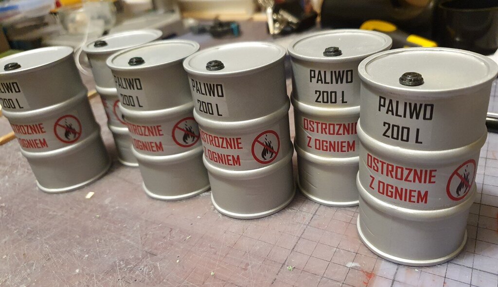 Witam formumowiczów i modelarzy. Przeniosłem się z działu modeli pływających do działu pojazdów. Budowa aut to dla mnie absolutna nowość. Dlatego nie chcę rzucać się na głęboką wodę, a w ramach relaksu (po wyczerpujacej budowie holownika Atlas II) skorzystam z gotowych zestawów. Jeżeli jednak okaże się, że jestem w stanie coś, ulepszyć lub zmienić, zapewne spróbuję to zrobić. Pojazd w założeniu ma być sterowany radiem jak i wszystkie jego funkcje. Do pojazdów ciężarowych mam pewien sentyment, gdyż w czasach dzieciństwa takie własnie były widywane w większości na naszych ulicach. A że blisko mnie był poligon wojskowy, to często tam chodziliśmy z chłopakami obserwując ćwiczenia żołnierzy jak i wielkie pojazdy w akcji. Moją przygodę z pojazdami rozpocznę od konstrukcji firmy King Kong RC (KKRC) modelu CA-30 wykonanego w skali 1:12. Co do skali to nie jest ona tak dokładna jak podaje producent. Niektóre wymiary odpowiadają sklali 1:11, a nawet 1:10. Ale nie jest to widoczne bez dokonania dokładnych pomiarów. Pierwszą zmianą będzie przerobienie Chińskiej wersji CA-30 na Radziecką ZIŁ-157. ZIŁ-151 różnił się tym, że miał bliźniacze opony na tylnych osiach. Zamienne mosty dla kół bliźniaczych producent nie przewidział dla tej wersji. Takie pojazdy występowały też w armi polskiej. Więc, będzie to wersja odpowiednia dla Ludowego Wojska Polskiego. Po obejrzeniu zestawu widzę, że zamontuje do ZIŁ-a wciagarkę i założę plandekę. Także skrzynię ładunkową zamierzam wykonać w całości z drewna, jako, że metalowe okucia są bardzo ładnie wykonane i powinno fajnie wyjść. Dołożę także oświetlenie. Zmienię umiejscowienie baterii zasilającej na inne niż proponuje producent. Ostateczny wybór miejsca padnie w czasie składania modelu. Może pokuszę się o dym z rury wydechowej i symulator dźwięku. Chcę także powiększyć zestaw o przyczepę z plandeką, dla której będzie konieczne wyposażenie ciągnika w hak. Przyczepę muszę zbudować od zera, gdyż nie ma odpowiedniego zestawu. Plany są ambitne i zobaczymy, co z tego uda sie zrealizować. Model dotarl z Chin, a paczka była w stanie nienagannym. Właściwe pudełko jest zapakowane w dodatkowy karton. Główne elementy modelu są poukładane w korytkach z pianki. Oj, pięknie to wygląda i bardzo profesjonalnie. Po wstępnym obejrzeniu mogę stwierdzić, że części są bardzo dobrze wykonane. Rama jest formowana z wprasowanymi łącznikami gwintowanymi, mosty, wały napędowe z kardanami i zawieszenie są metalowe. Resory piórowe są metalowo-plastikowe. Drążek Panharda jest metalowy, a drążki zawieszenia są wyposażone w tuleje gumowe (właściwie jest to guma silikonowa) – jak prawdziwe. Elementy są albo walcowane, albo odlewane lub wycinane CNC. . Trochę rozczarowują mosty odlewane ze stopu cynku. Nie, nie co do jakości, ta jest bardzo wysoka. Nie są to natomiast przekładnie różnicowe, a jedynie przekładnie kątowe dające stały napęd na wszyskie 6 kół. Słowem wszyskie koła są na sztywno połączone z silnikiem dając stałe 6x6. Trochę to zaskakuje, bo w oryginale pojazd nie miał żadnych blokad. W końcu nie był stworzony do jazdy w terenie, miał być mocnym ciągnikiem na różnego rodzaju drogi. Na drogi błotniste nie było to dobre rozwiązanie. Wykonanie stałego napędu przez KKRC, daje fanom modelarskiego off-roadu pojazd, który pokona wszystkie przeszkody. Przekładnia jednobiegowa jest w całości wykonana z metalu. Podpora wału napędowego jest ułożyskowana. Wszystko zbudowane na łożyskach kulowych. Całość jest montowana za pomocą różnego rozmiaru śrubek. Od M1.5, poprzez M1.7, M2 i M2.5 do M3. Sworznie są zabezpieczone pierścieniami zabezpieczjacymi. Musiałem zaopatrzyć się w zestaw imbusów wewnętrznych i zewnętrznych – bez tego nie da rady. Na każdym kroku da sie zauważyć bardzo wysoką jakość wykonania i dbałość o szczegóły. Wszystko jest super spasowane. Konstrukcja modelu odpowiada konstrukcji prawdziwego pojazdu. Opony są z bardzo miękkiej gumy z realistycznym bieżnikiem z wkladką piankową sprawiające wrażenie prawdziwych. Będą zapewne się uginały pod ciężarem modelu i ładunku. Sam model wg producenta to około 5 kg. Kabina wykonana z twardego ABS. Odlew jest najwyższej jakości i nie wymaga żadnego praktycznie szlifowania. Mało jest elementow wymagajacych montażu za pomoca kleju. W większości są to elementy skręcane. Skrzynia ładunkowa ma podlogę z tworzywa, a burty wycięte są z jednego kawałka drewna. Całość wg planów ma być skręcana bez użycia kleju. Wszystkie okucia to odlewy metalowe. Planuję zrobić skrzynię z listwek drewnianch imitujących deski. W zestawie nie ma silnika napędowego, ani serwa, ani żadnych innych części elektrycznych. Jest natomiast przekładnia i dźwignia serwa dla kół skręcanych, a także zębatka napędowa silnika z wałem 3.175 mm. Na YT znajduje się bardzo dużo szczegółowych filmów z montażu modelu, więc ograniczę ilość informacji, aby się nie powtarzać, a skupię się na tym, czego nie ma gdzie indziej, a być może okaże się przydatne dla innych stojących przed dylematem – czy warto złożyć taki model. No, ale, aby nie było zbyt łatwo, zacznę budowę nie od modelu, a od ..... wykonania ładunku jaki ZIŁ normalnie przewoził dla wojska. Czyli beczek na paliwo oraz skrzynek na amunicje. Rozpocznę od beczek. Wykorzystałem gotowe beczki, które odpowiadają kształtem jak i wymiarami dla skali modelu. Skleiłem je i poddałem obróbce szpachlowania, szlifowania i malowania. Aby były bardziej realistyczne dołożyłem do nich obciążenie. Każda waży około 250 gramów, co ma symulować wagę beczki z paliwem w skali. Beczki oryginalne były stalowe, ocynkowane i w porównaniu do dzisiejszych wykonanych z tłoczonej blachy, były potwornie ciężkie, ale praktyczni