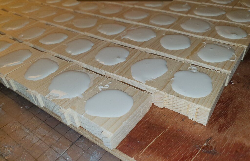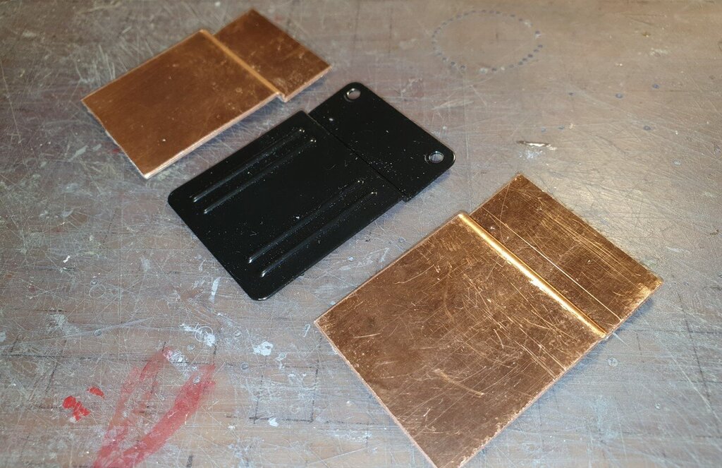 Pleksi 1 mm. Niektórzy wykorzystują opakowania od płyt CD.