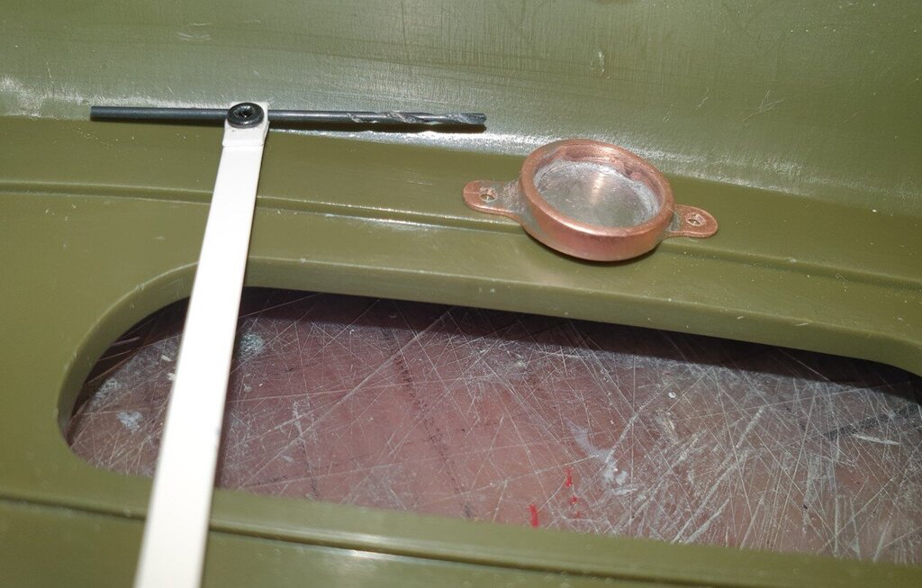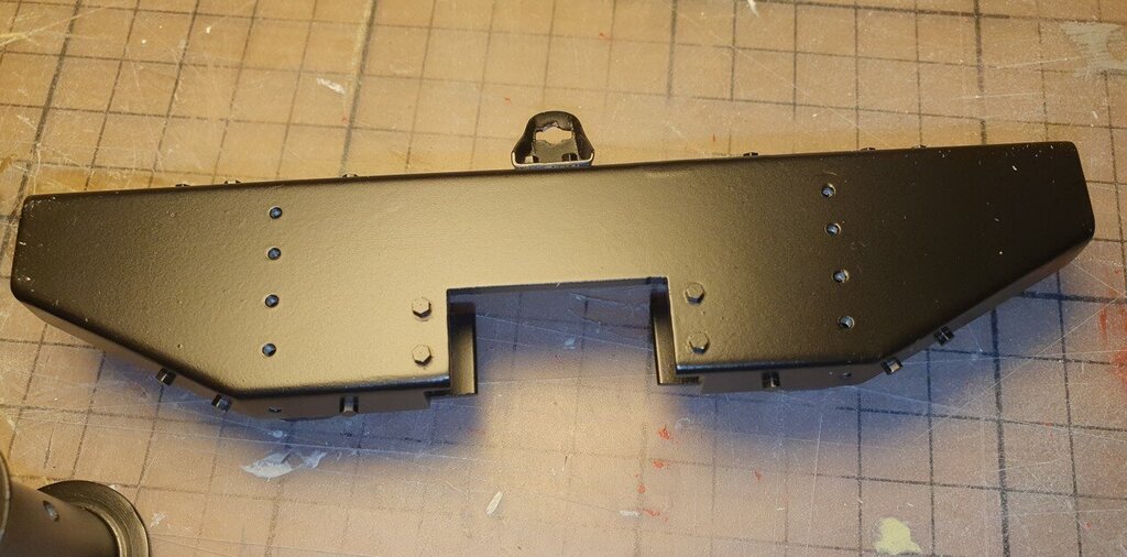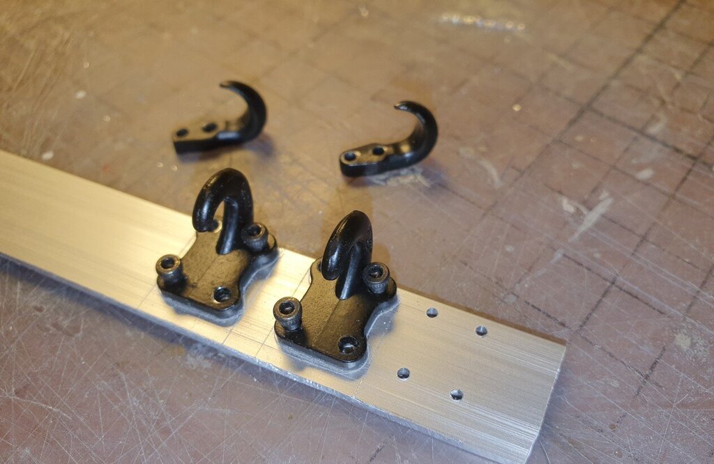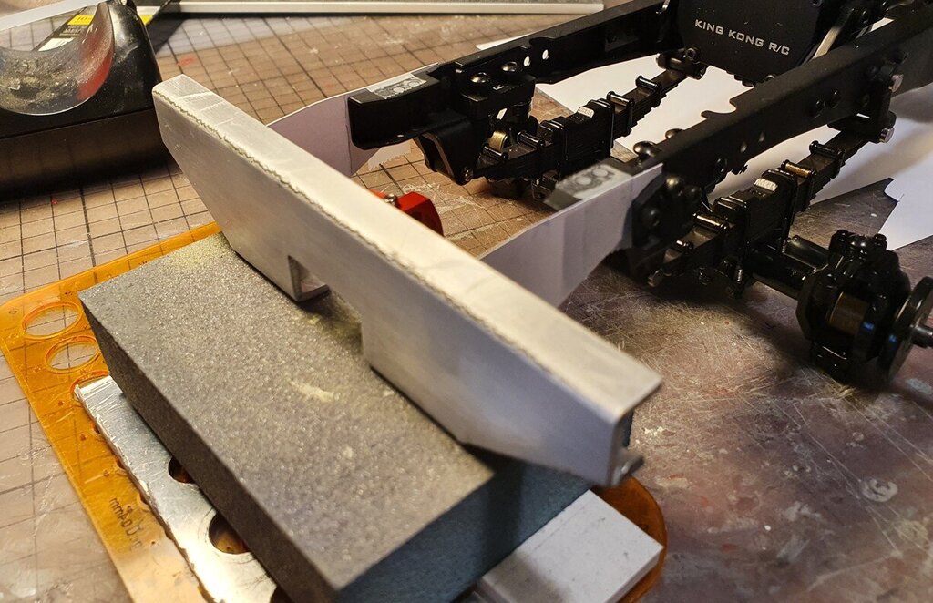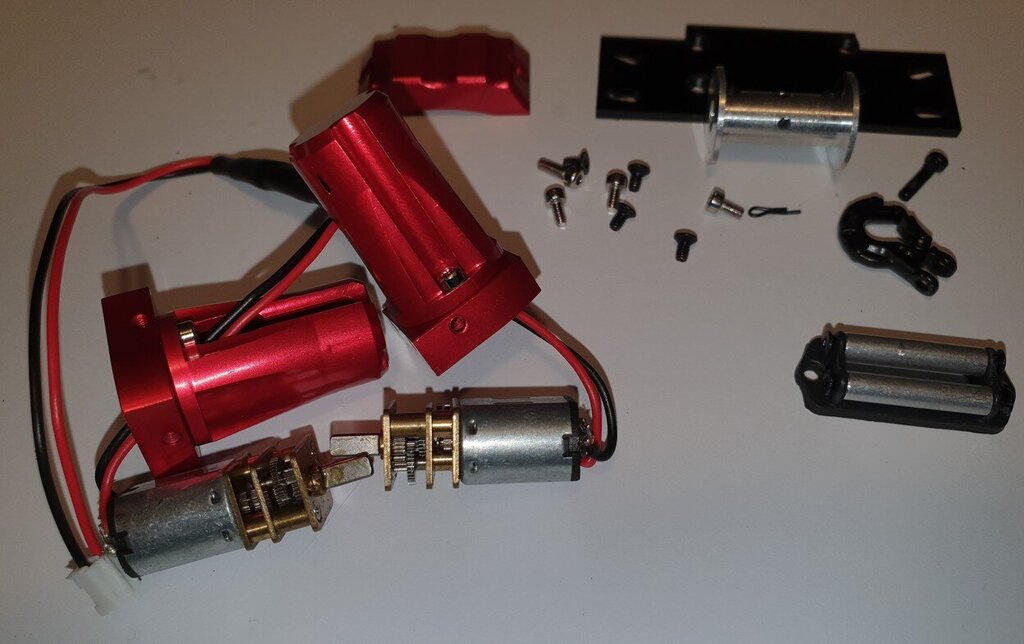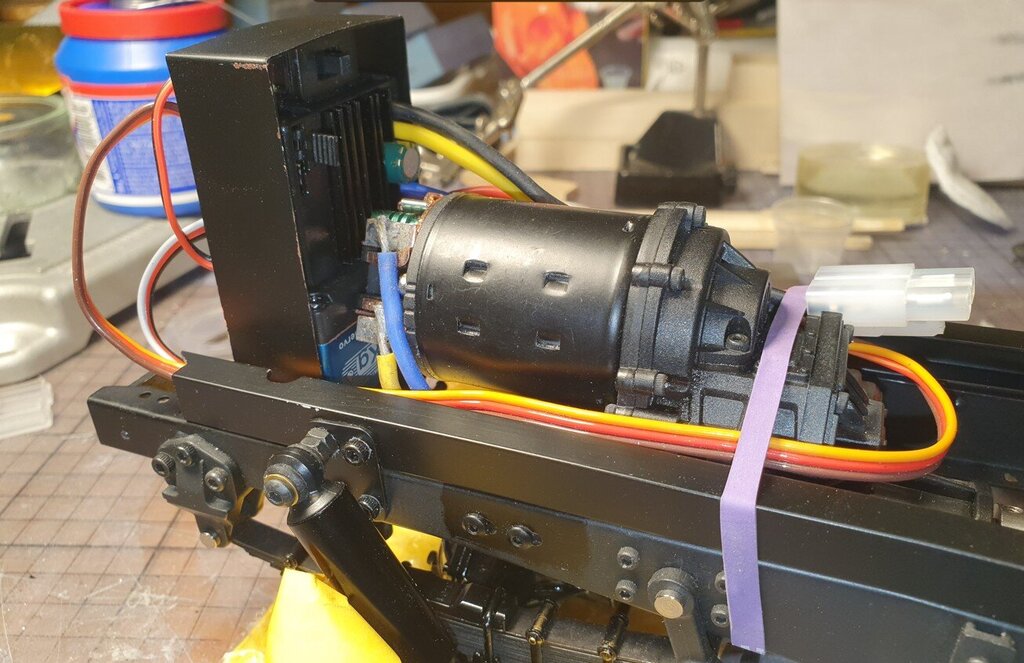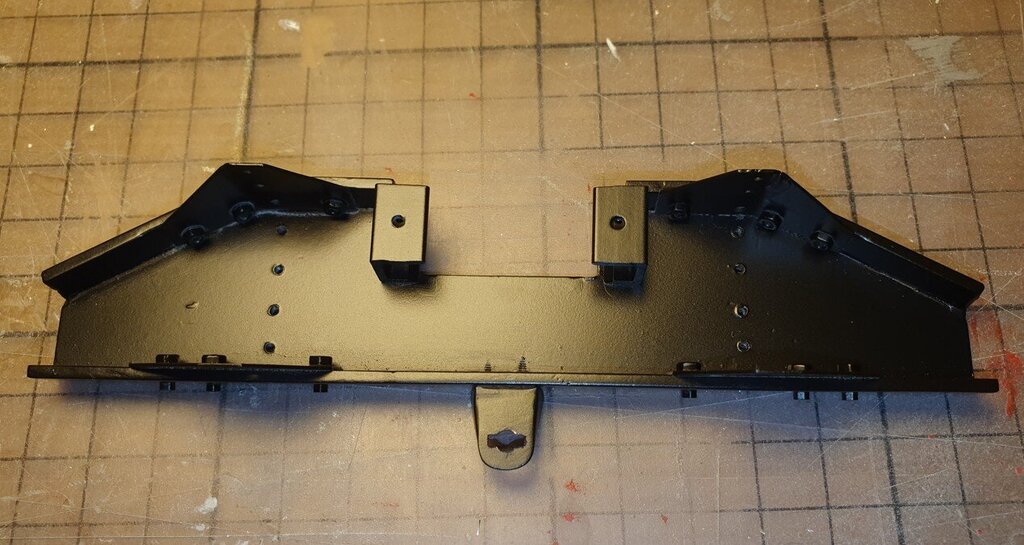 Znalazłem w necie fajne rysunki wciągarki oraz zdjęcia.Zecydowałem, że pokuszę się o zrobienie. Najpeirw zakupiłem gotową wciągarkę, aby wykorzystać to co tylko możliwe. Niestety wykorzystałem niewiele i to też na siłę. No ale poznałem budowe i o co w ty chodzi.... Czas na budowę. Konstrukcja z blachy aluminiowej, a wzmocnienia ramowe z blachy miedzianej. Zrezygnowałem ze zderzaka z zestawu.... Wzmocnienie pod wciągarkę.... Montując nowe elementy starałem się wykorzystywać istniejące otwory w ramie.... Najpierw model z papieru.... Potem trasowanie w metalu... i wycinanie na pile tarczowej.... Elementy gięte nacinałem do połowy grubości blachy.... Pierwsza przymiarka i potem bardzo duż przymiarek... Rolki wykorzystałem od innej wciągarki.... Boczne ściany pomalowane czarnym flamasterm dla lepszego wyobrażenia mocowania.... Wzmocnienia krzyżowe z blachy miedzianej .... Mocowanie na taśmę papierową.... Jako, że to jest prototyp, to przymiarek i korekt jest dużo. Zdjęcia to esencja kilku dni dopasowań.... Widoczne śrubki są tymczasowe. Docelowo będą z łbem sześciokątnym... Otwory na silniki wciągarki. Zamontuję dwa silniki 15 rpm/min.... prowadzenie do korby.... Nowe haki mocowane na 4 śruby. W wersji bez wciągarki były mocowane na dwie śruby... Do malowania użyłem farby TAMIYA TS-29 SEMI GLOSS BLACK.... Bęben specjalnie zaprojektowany... wytoczone ze stali i oparty na dwóch łożyskach kulowych... Dzieki takiemu mocowaniu łożyska silników nie są obciążone jak to jest w oryginalnej wersji wciągarki.. Całą siłę uciągu przeniszą łożyska i ich mocowanie.... Obudowy przekłani wykonałem z 4 wearsw PCV twardego grubości 4 mm każda..... Frezarka Proxxon jest niezastąpiona w takich małych pracach.... Wykonywałem dwia obudowy za jednym razem. Potem je rosdzieliłem.... Wał wciągarki jest wykonany z rurki aluminiowej 5x1. Dzięki takiemu kształtowi obudowy przekładni silników, lina nie będzie miała możliwości przycinać się pomiędzy obudową, a talerzem bębna wciągarki..... Ze zmintowaniem elementów w całość, było trochę główkowania co do kolejności. Ale się udało.... Zasilanie 6V... I tak prezentuje się na podwoziu.... Rózni sie od oryginału, ale i nie ma to być model redukcujny, a jedynie taka wolna ekspresja Ziła..... -