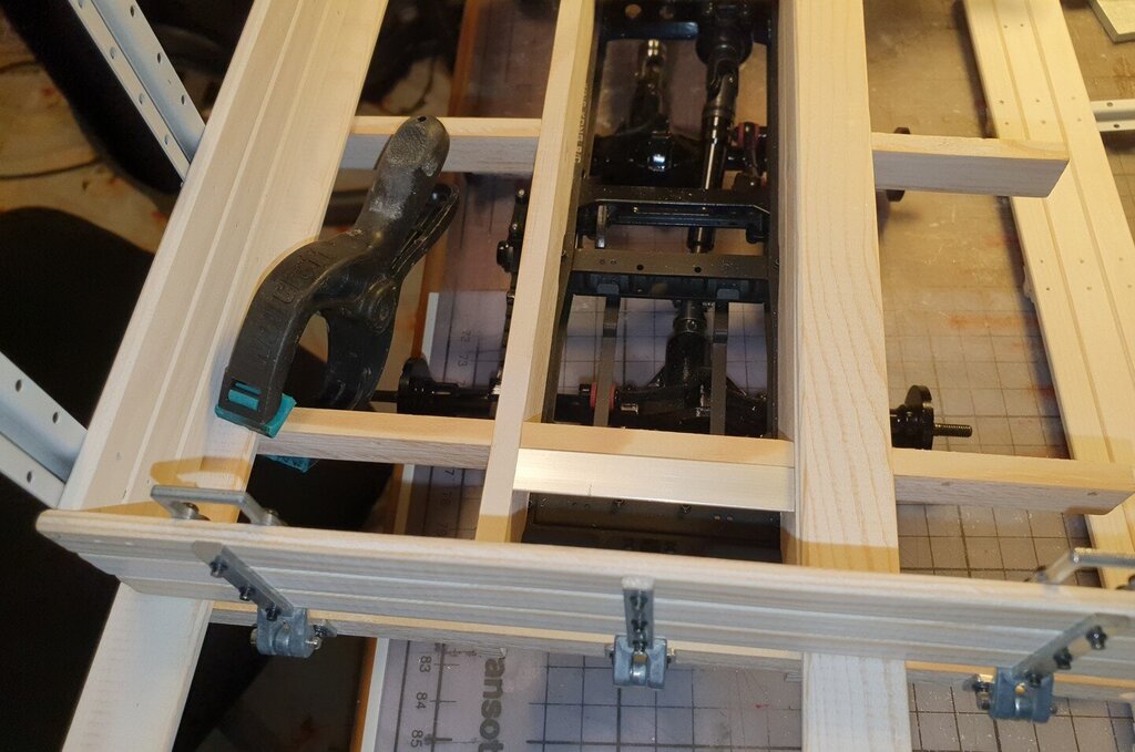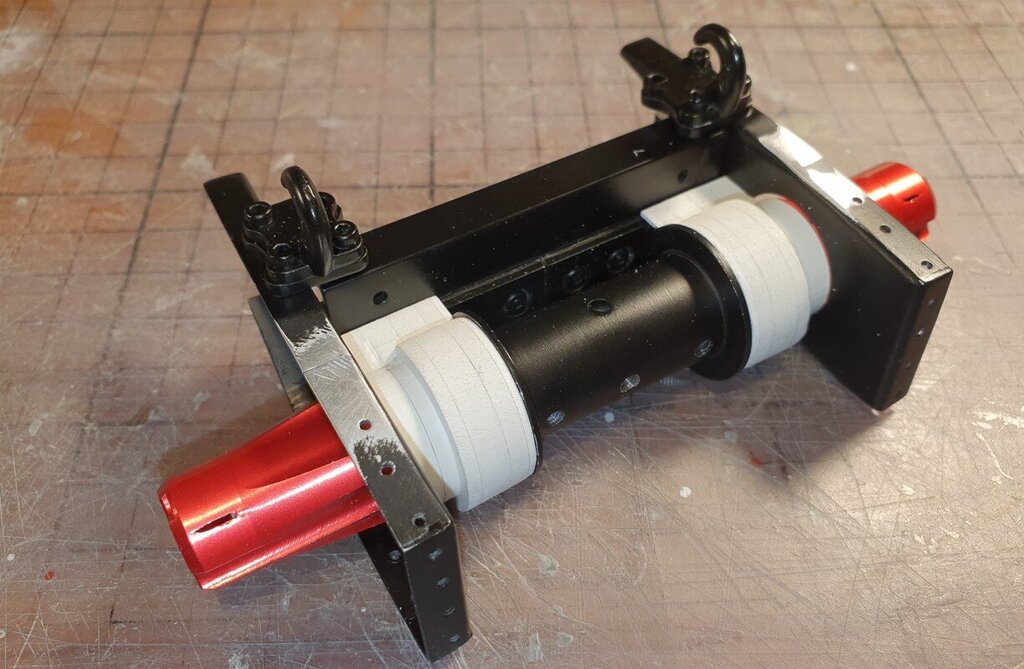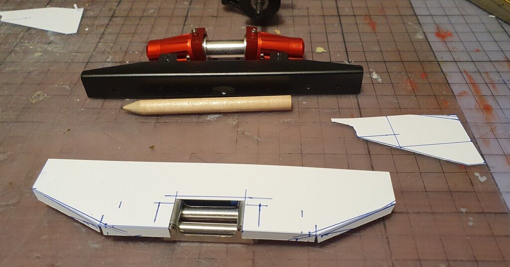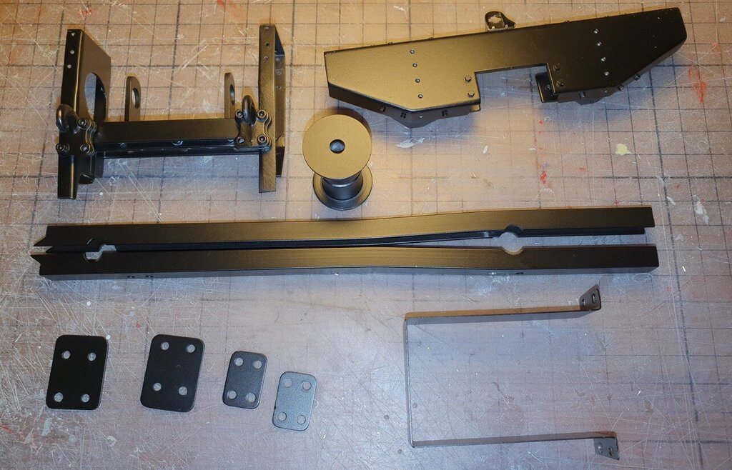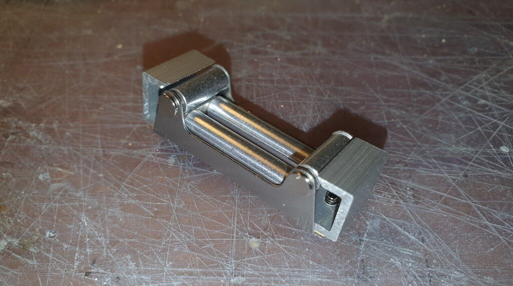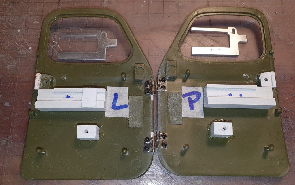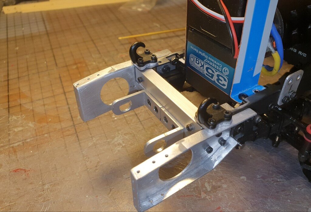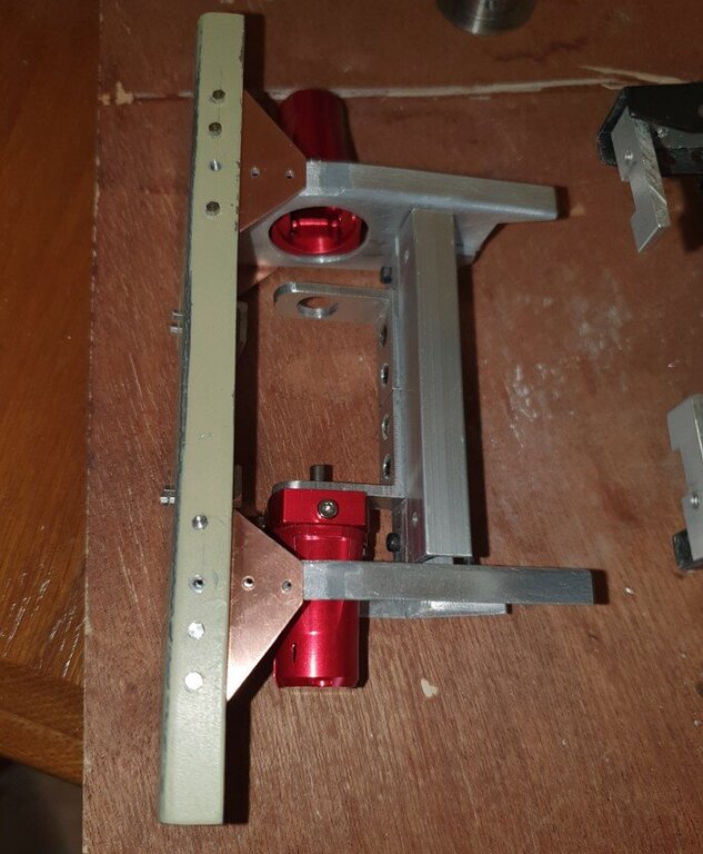 Znalazłem w necie fajne rysunki wciągarki oraz zdjęcia.Zecydowałem, że pokuszę się o zrobienie. Najpeirw zakupiłem gotową wciągarkę, aby wykorzystać to co tylko możliwe. Niestety wykorzystałem niewiele i to też na siłę. No ale poznałem budowe i o co w ty chodzi.... Czas na budowę. Konstrukcja z blachy aluminiowej, a wzmocnienia ramowe z blachy miedzianej. Zrezygnowałem ze zderzaka z zestawu.... Wzmocnienie pod wciągarkę.... Montując nowe elementy starałem się wykorzystywać istniejące otwory w ramie.... Najpierw model z papieru.... Potem trasowanie w metalu... i wycinanie na pile tarczowej.... Elementy gięte nacinałem do połowy grubości blachy.... Pierwsza przymiarka i potem bardzo duż przymiarek... Rolki wykorzystałem od innej wciągarki.... Boczne ściany pomalowane czarnym flamasterm dla lepszego wyobrażenia mocowania.... Wzmocnienia krzyżowe z blachy miedzianej .... Mocowanie na taśmę papierową.... Jako, że to jest prototyp, to przymiarek i korekt jest dużo. Zdjęcia to esencja kilku dni dopasowań.... Widoczne śrubki są tymczasowe. Docelowo będą z łbem sześciokątnym... Otwory na silniki wciągarki. Zamontuję dwa silniki 15 rpm/min.... prowadzenie do korby.... Nowe haki mocowane na 4 śruby. W wersji bez wciągarki były mocowane na dwie śruby... Do malowania użyłem farby TAMIYA TS-29 SEMI GLOSS BLACK.... Bęben specjalnie zaprojektowany... wytoczone ze stali i oparty na dwóch łożyskach kulowych... Dzieki takiemu mocowaniu łożyska silników nie są obciążone jak to jest w oryginalnej wersji wciągarki.. Całą siłę uciągu przeniszą łożyska i ich mocowanie.... Obudowy przekłani wykonałem z 4 wearsw PCV twardego grubości 4 mm każda..... Frezarka Proxxon jest niezastąpiona w takich małych pracach.... Wykonywałem dwia obudowy za jednym razem. Potem je rosdzieliłem.... Wał wciągarki jest wykonany z rurki aluminiowej 5x1. Dzięki takiemu kształtowi obudowy przekładni silników, lina nie będzie miała możliwości przycinać się pomiędzy obudową, a talerzem bębna wciągarki..... Ze zmintowaniem elementów w całość, było trochę główkowania co do kolejności. Ale się udało.... Zasilanie 6V... I tak prezentuje się na podwoziu.... Rózni sie od oryginału, ale i nie ma to być model redukcujny, a jedynie taka wolna ekspresja Ziła..... -