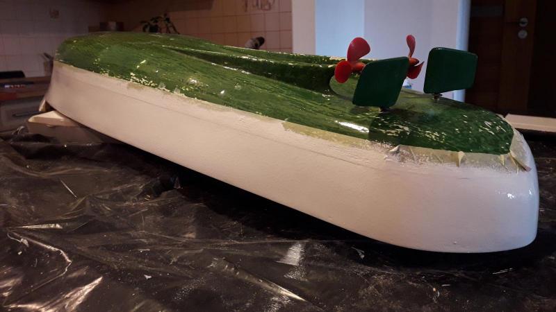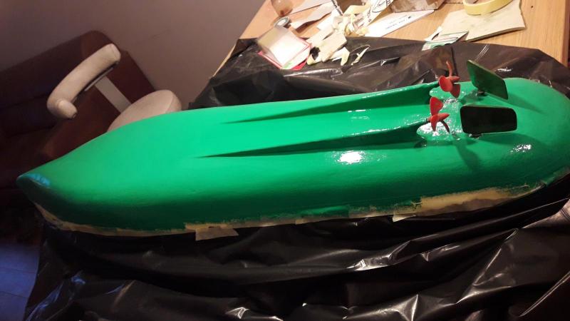 Dzień dobry Znalazłem chwilkę na szpachlowanie kadłuba, więc niedługo pewnie pomaluję go i zajmę się uzbrajaniem pokładów. Nie mam niestety tyle czasu żeby codziennie dłubać w stoczni. Przy okazji chciałbym Wam przedstawić łódkę którą kupiłem znacznie wcześniej ale długo stała nie ruszana. Wszystko wskazuje na to że to malutkie cudo niedługo polata Nie chcę zakładać nowego wątku, bo i tak jest już prawie skończona, ale historia jest taka, że prawdopodobnie jest to kadłub z historią Pewnie sportową. Nie wykluczam że znajdzie się tu nawet poprzedni właściciel Kupiłem ja jako używany uzbrojony kadłub bez elektryki. Wg mnie piękna, dokładna, profesjonalna robota !! Na początek tylko detale -