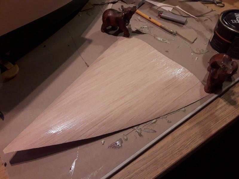 Więc ja to zrobię Właśnie właśnie...nie wiem czy dobrze kombinuję ale czy mogę, na wstępie, gołej wyciętej już sklejce nadać wstępny kształt namaczając ją i doginając? Myślałem o tym ale stwierdziłem że szkoda zachodu bo sklejka jest cholernie twarda i raczej wodoodporna i nic to nie da. -