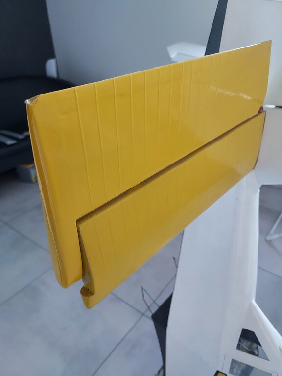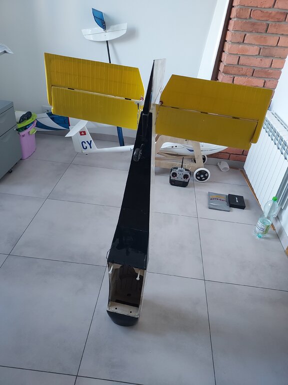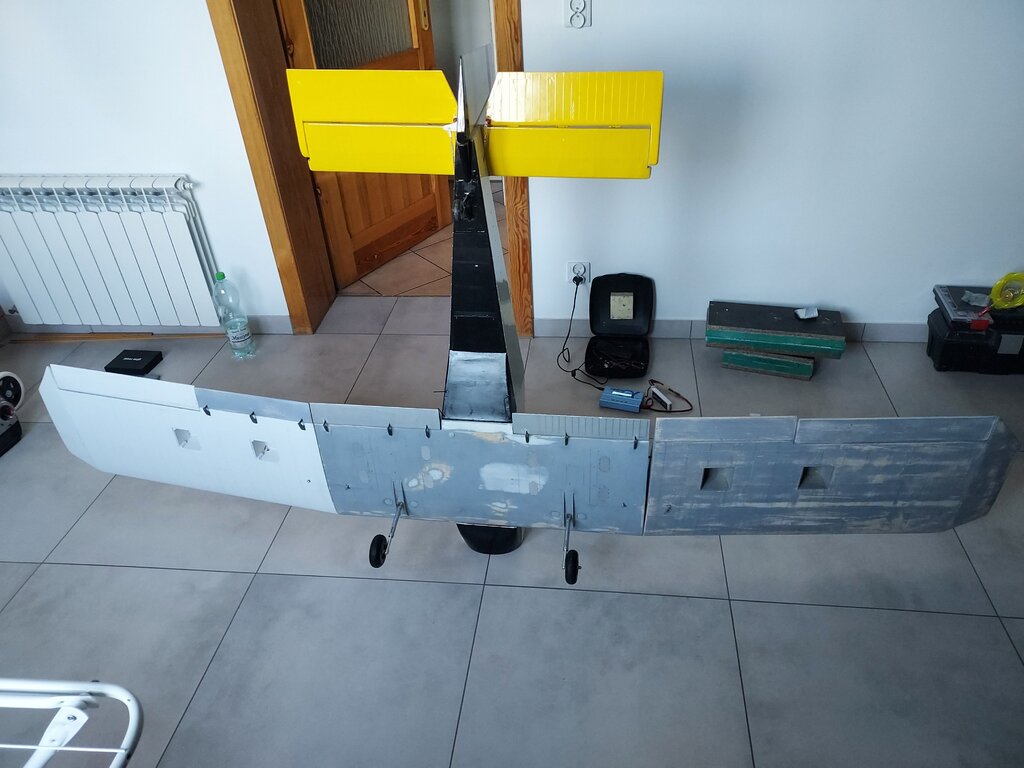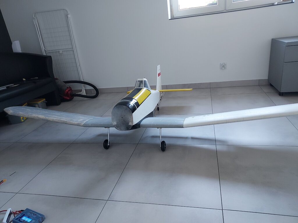 Sprawdzę po pracy dokladnie. Z tego co pamiętam to skrzydło było przed tkanina i waga wychodziła t tym stanie chyba 3,150kg z tym podwoziem ze zdjęcia i trzema podpiętymi serwami na ogon. Celuje ze cały model gotowy do lotu wyjdzie w granicy 6,500kg ale to wyjdzie w praniu.