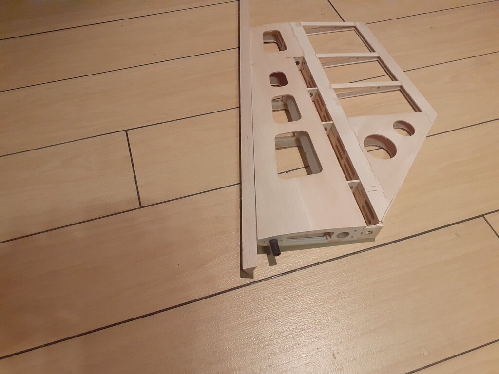 Można powiedzieć że ster kierunku i wysokości zrobiony na gotowo.Garb wklejont wrega przyklejona tylko dopieścić.Wszystko ładnie pasuje. -