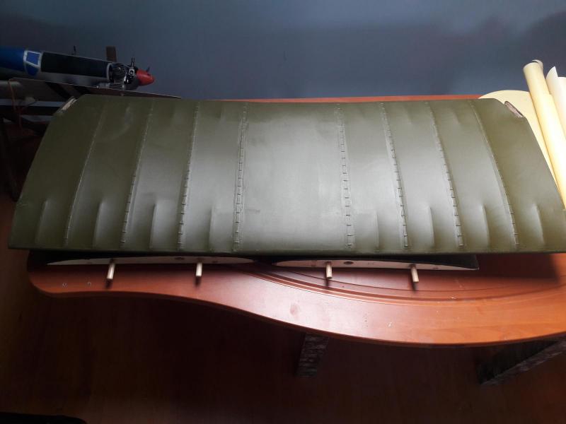 napęd nie będzie jak u Arka ,chciałem dać przekładnie ale cena silnika z przekłądnią lekka przesada ,daję 80ccm i będzie dobrze .A jak Arek pisał parę dni poszło psu w d... z oklejaniem podszewką ,miałem oklejone stery i centropłaty ,no i trzeba było zdzierać . Podszewka bez nitrocelonu nie da się naciągnąć dobrze ,wodne lakiery miękną i po pewnym czasie wszystko flaczeje ,tak że został oratex